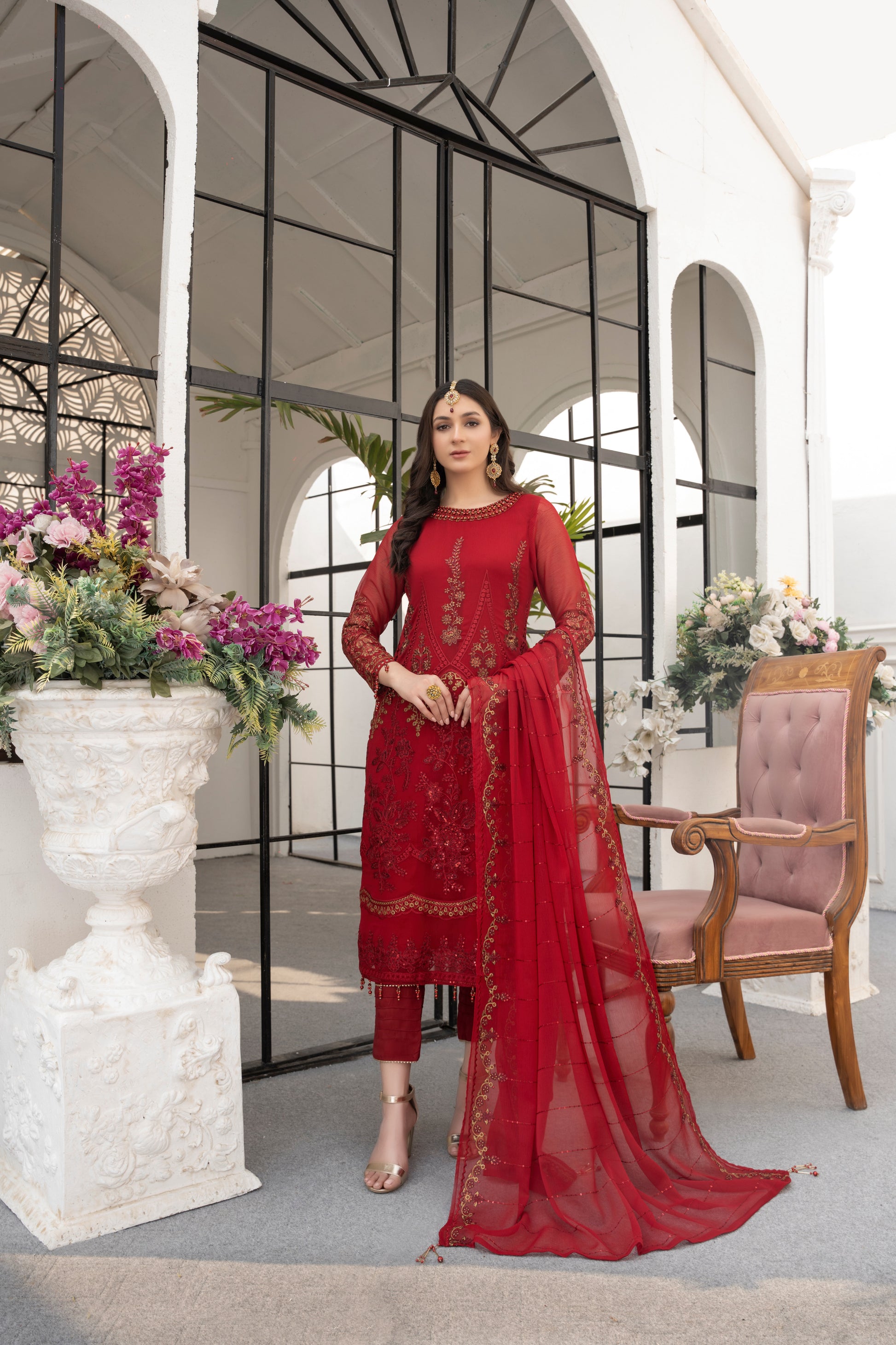Fabric: Chiffon Shirt, Chiffon Dupatta, Rawsilk Trouser