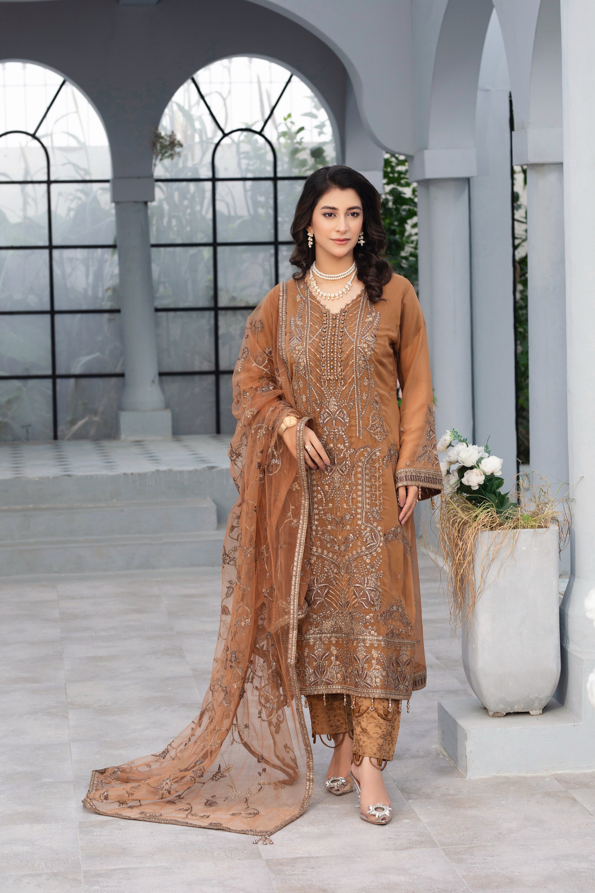 Fabric: Chiffon dress, Net dupatta, Jacquard Viscose trouser