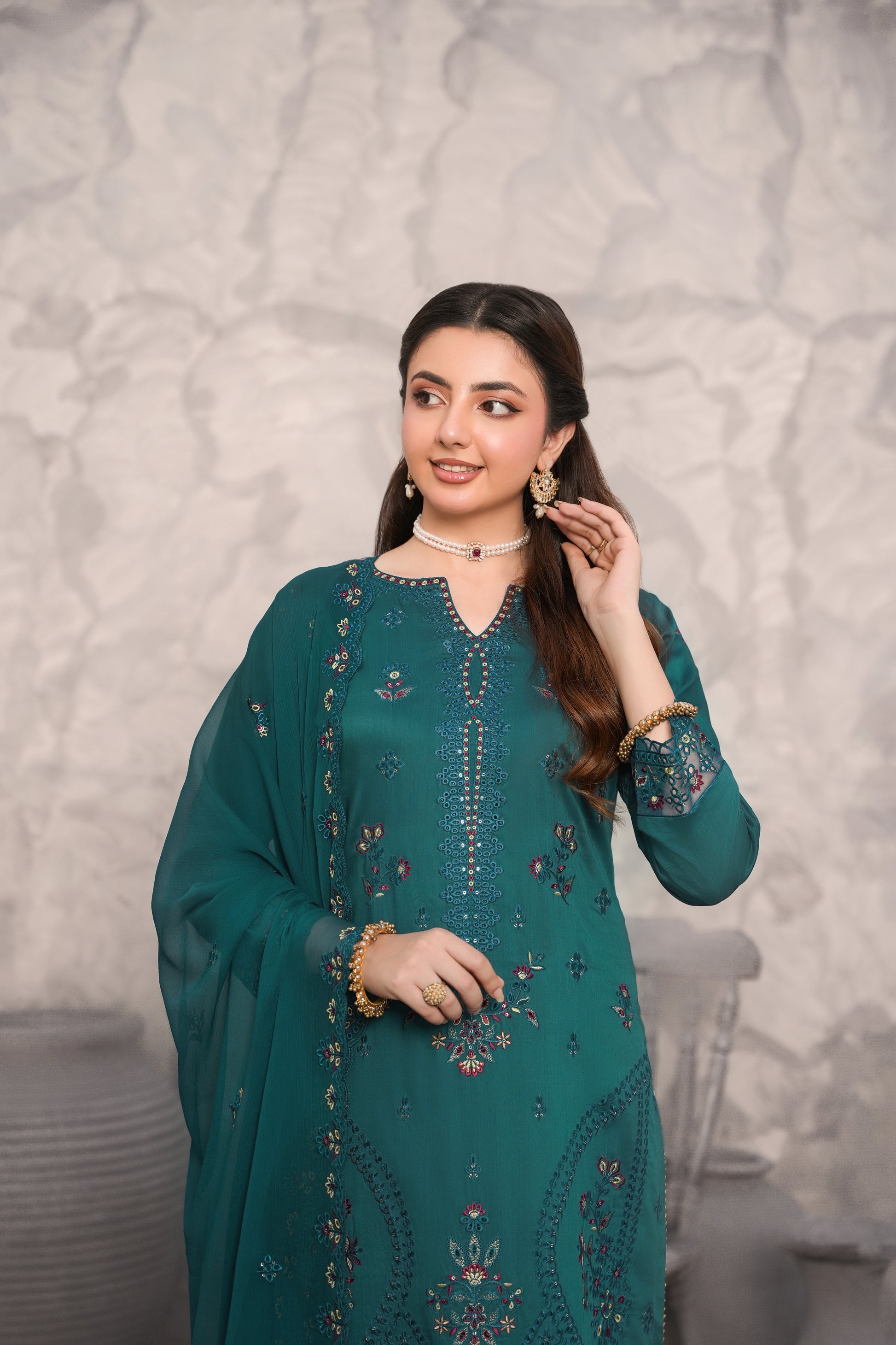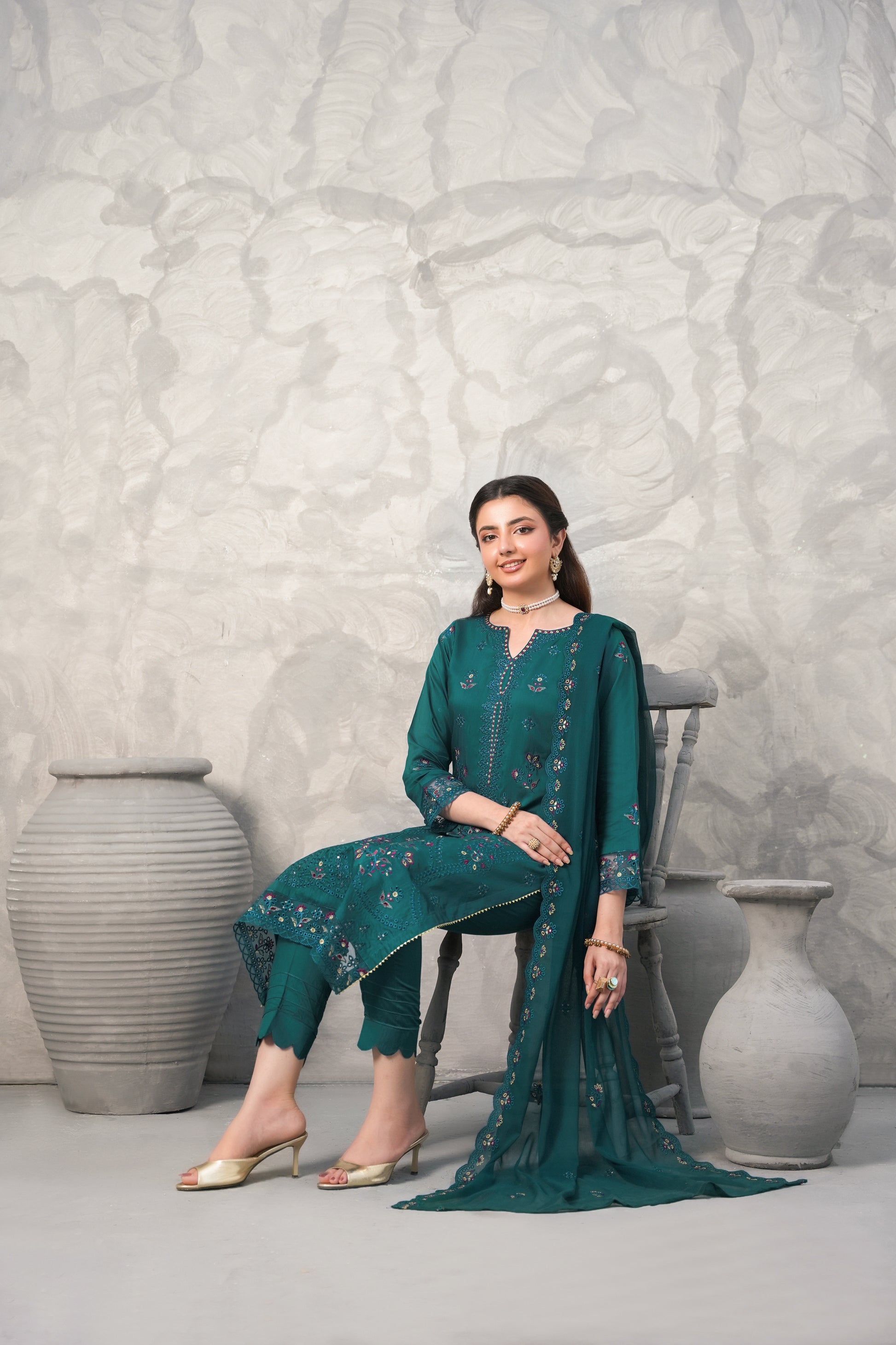 Fabric: Embroidered Viscose shirt, cutwork embroidered Chiffon dupatta, plain Viscose trouser