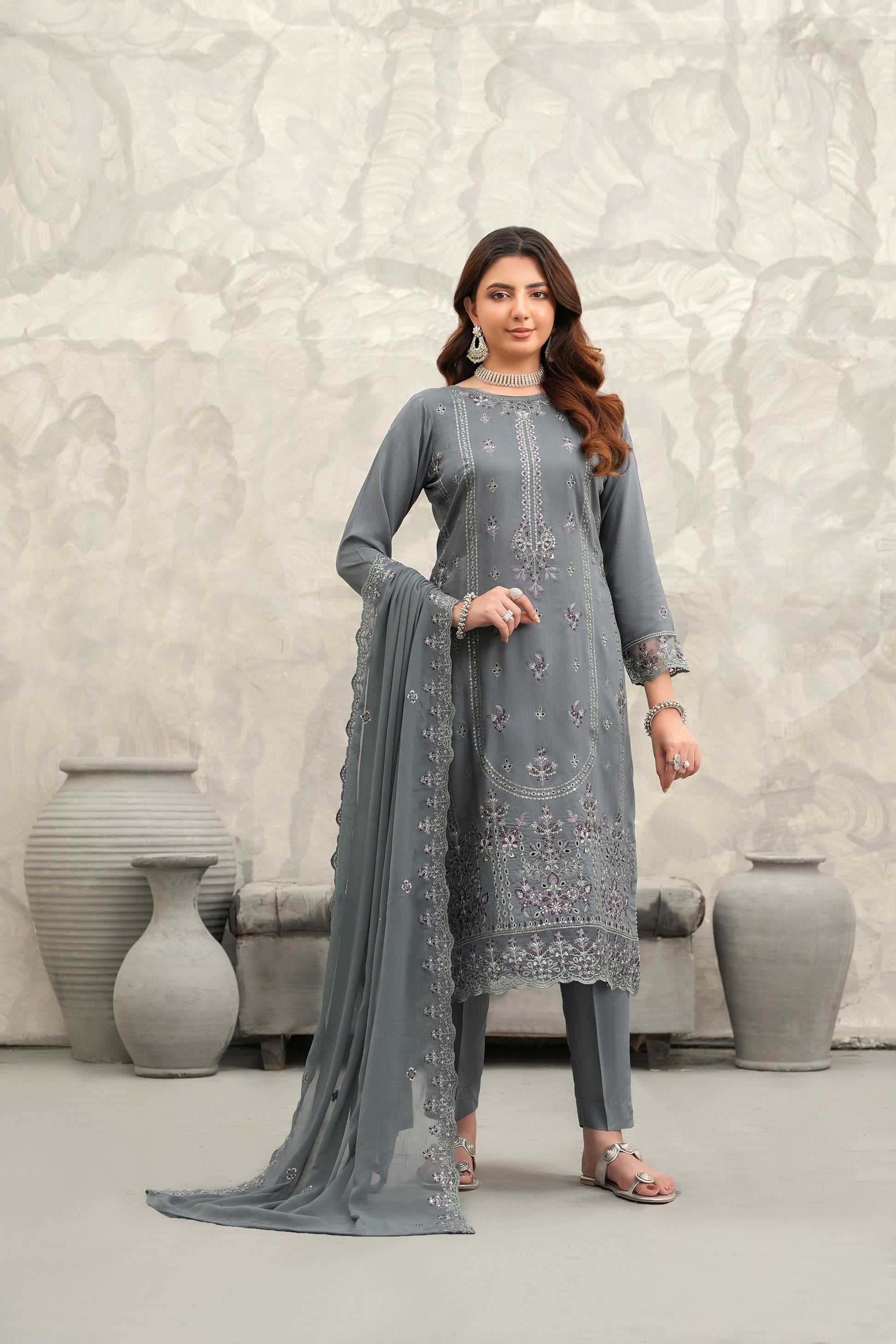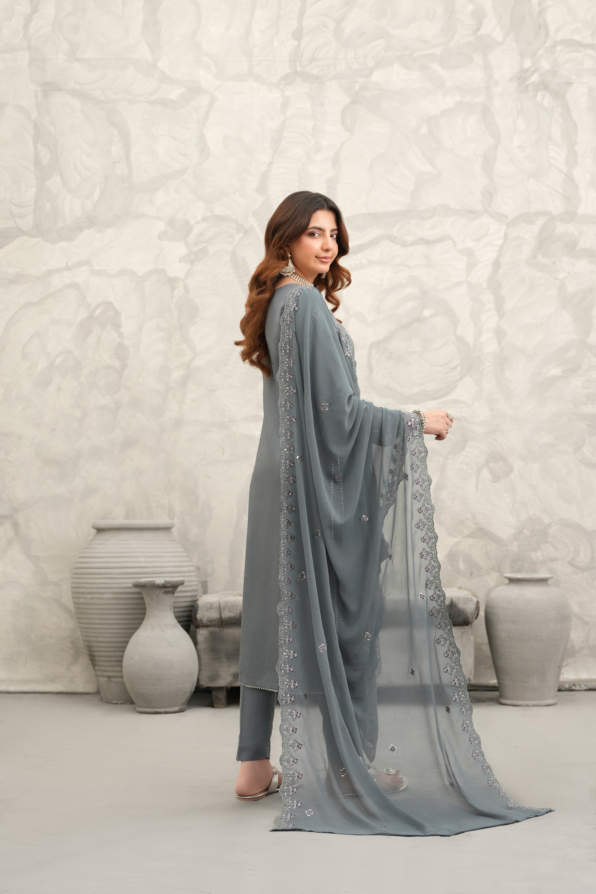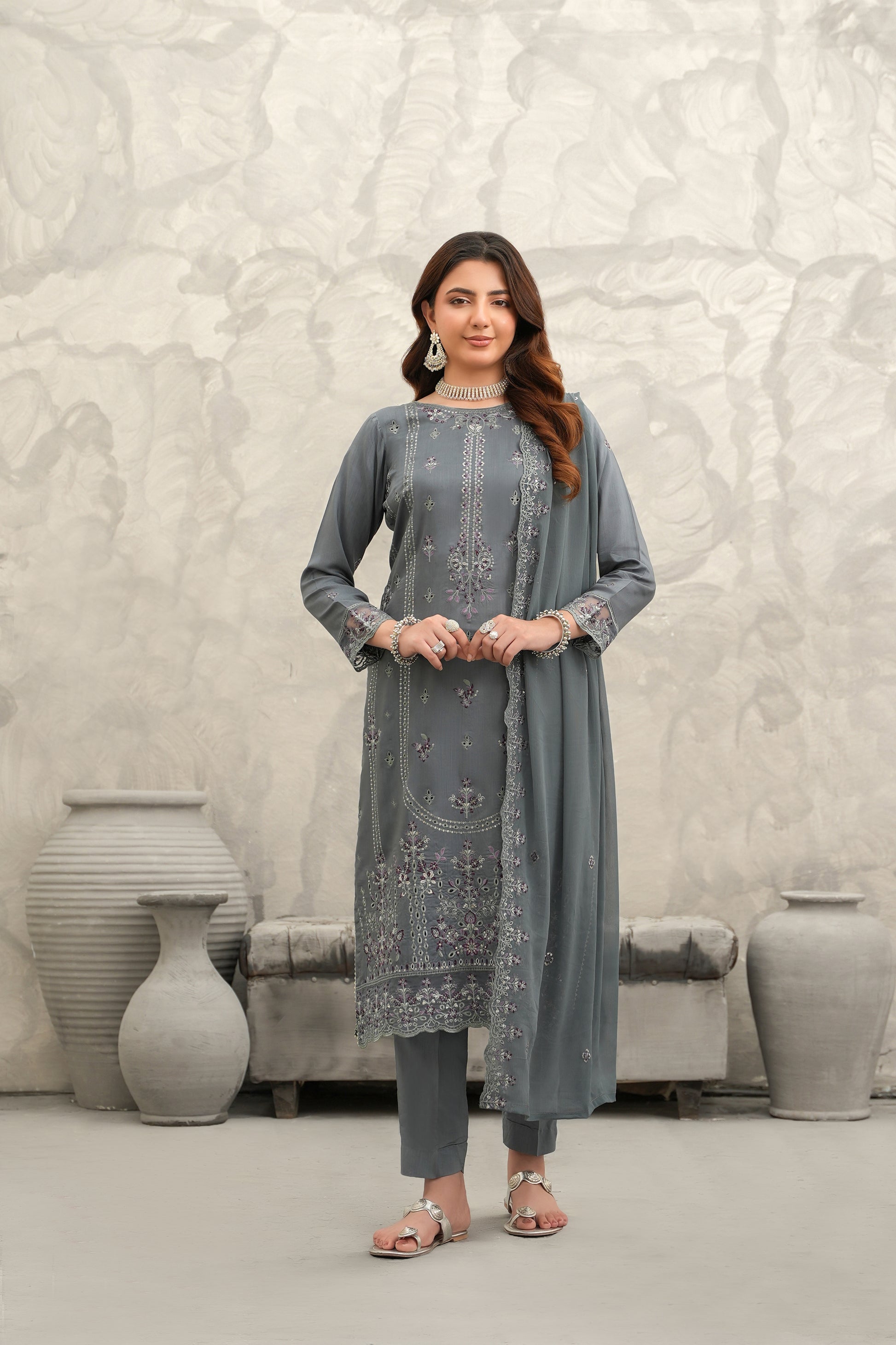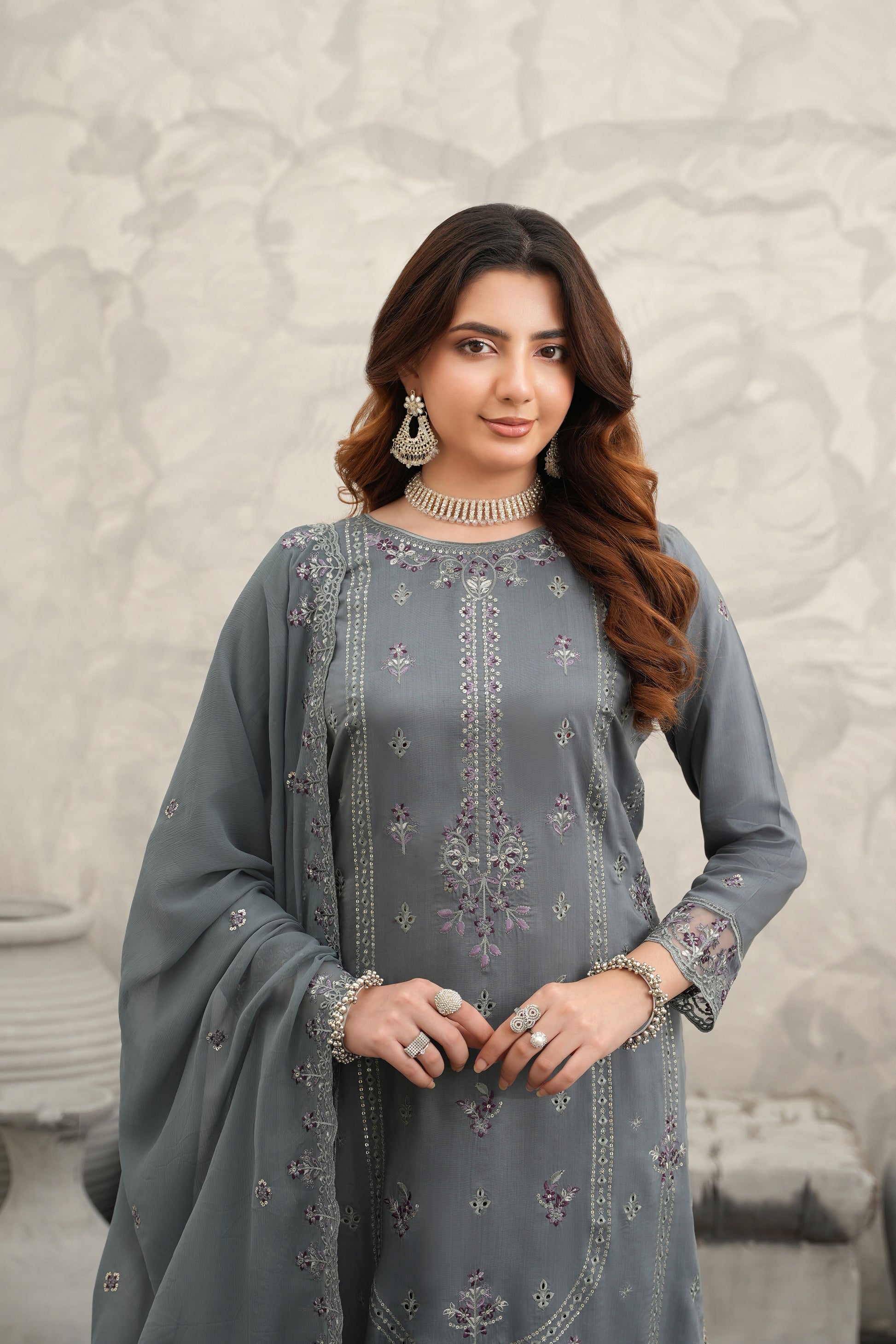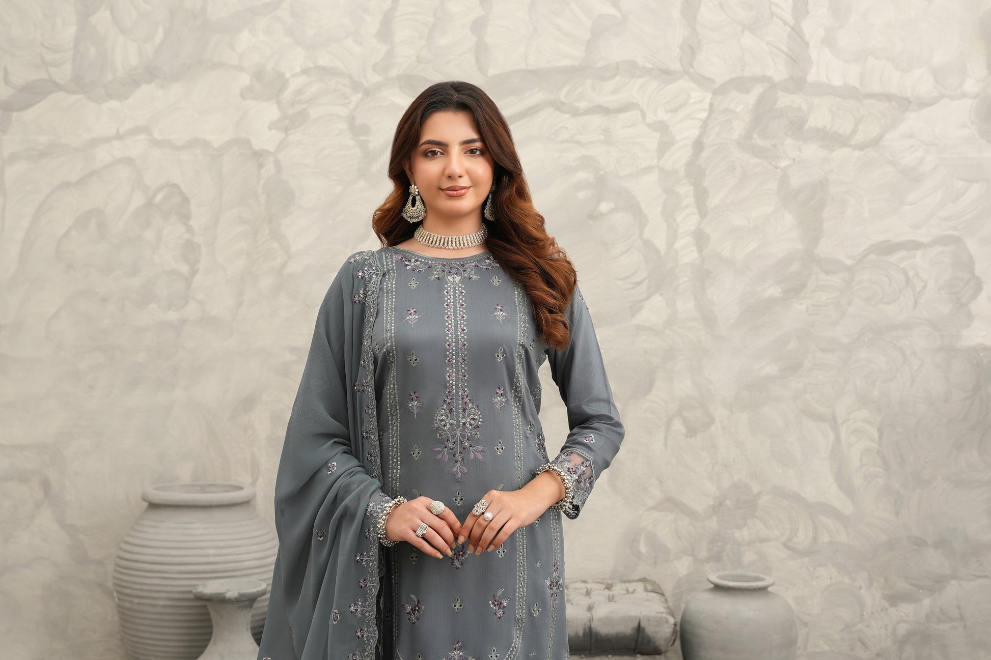 Fabric: Embroidered Viscose shirt, cutwork embroidered Chiffon dupatta, plain Viscose trouser