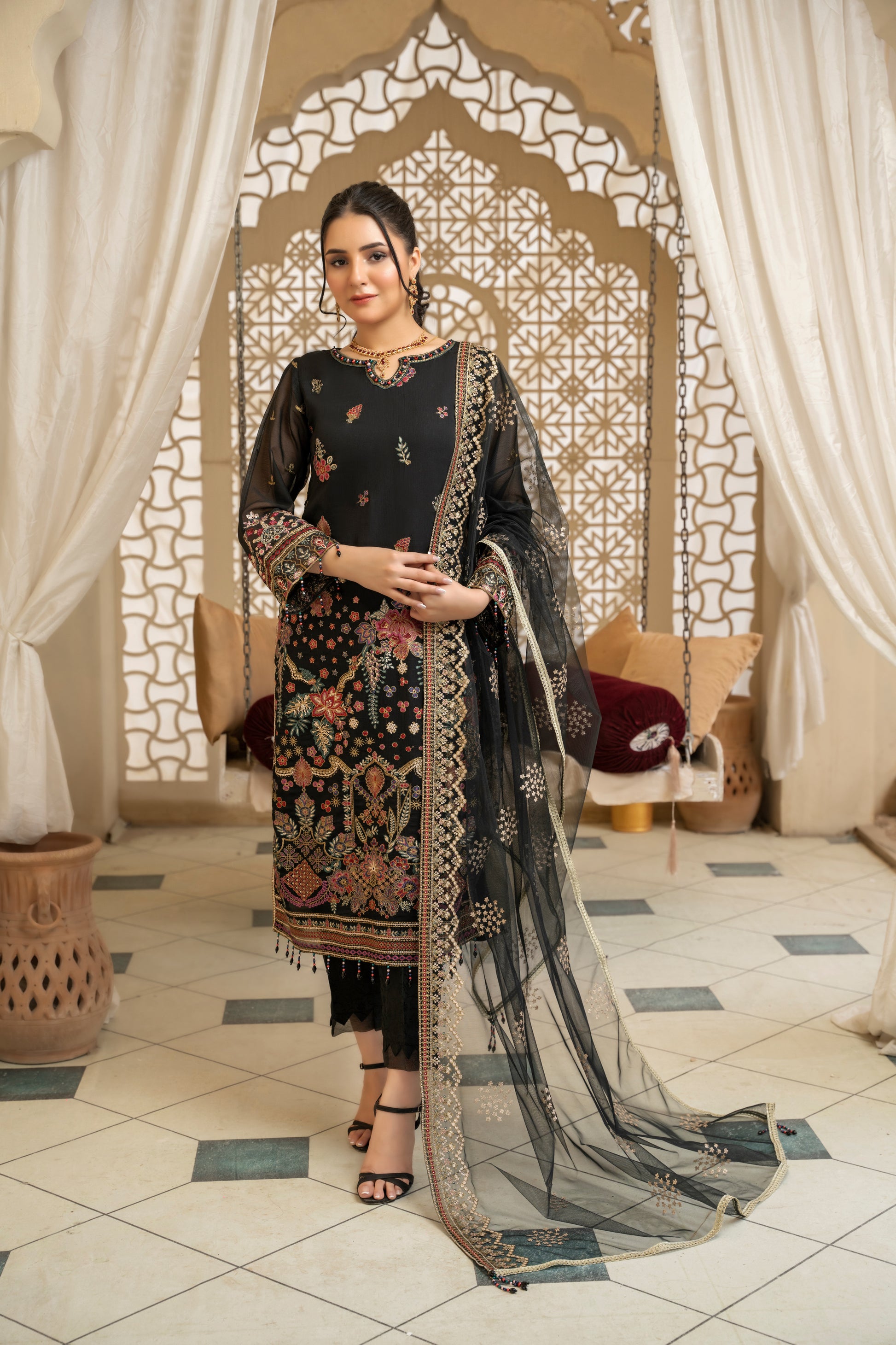 Fabric: Chiffon Shirt, Net Dupatta, Jacquard Viscose Trouser