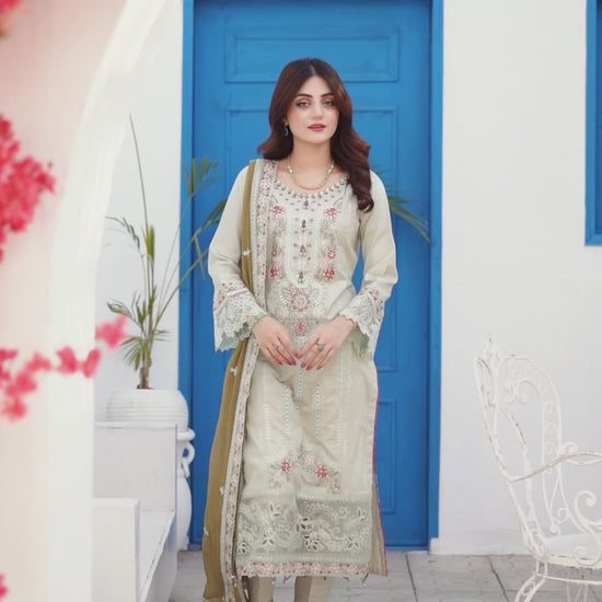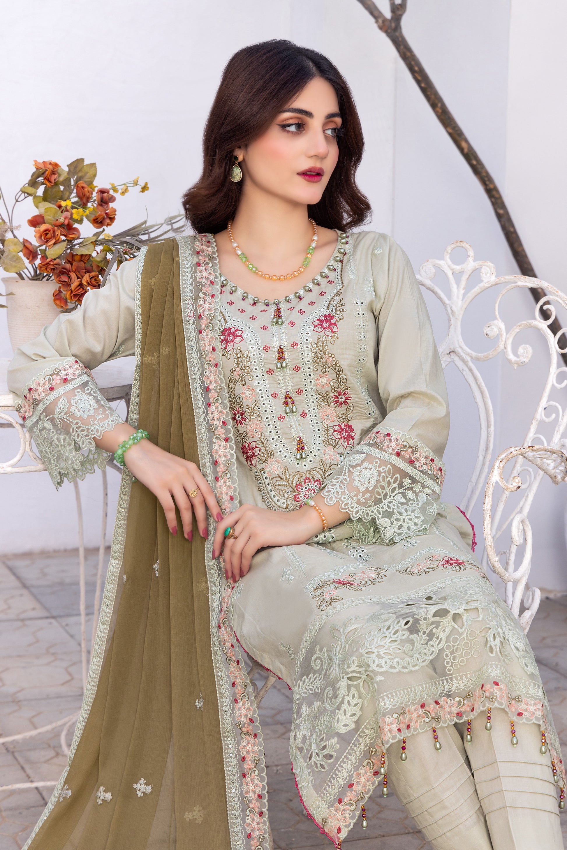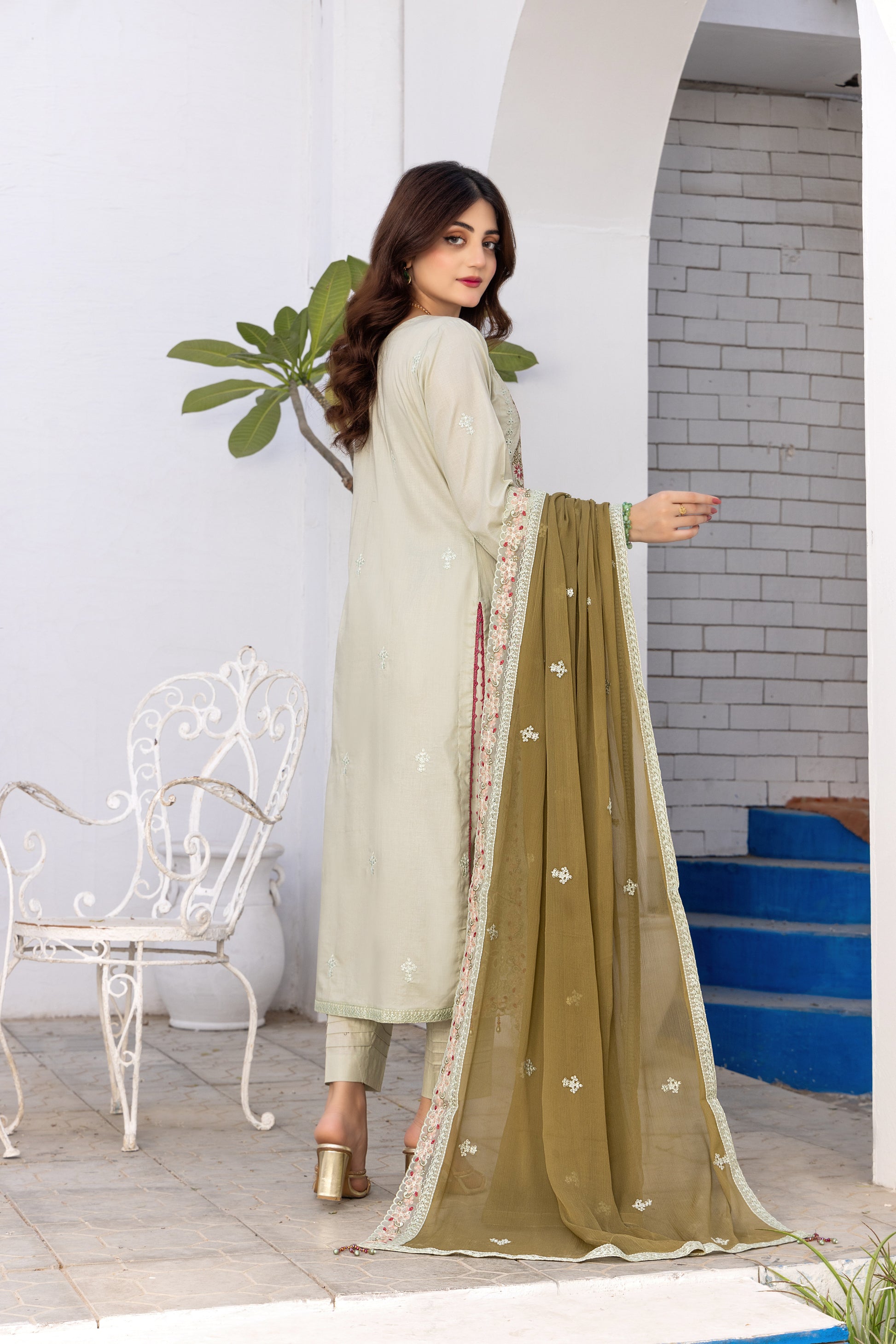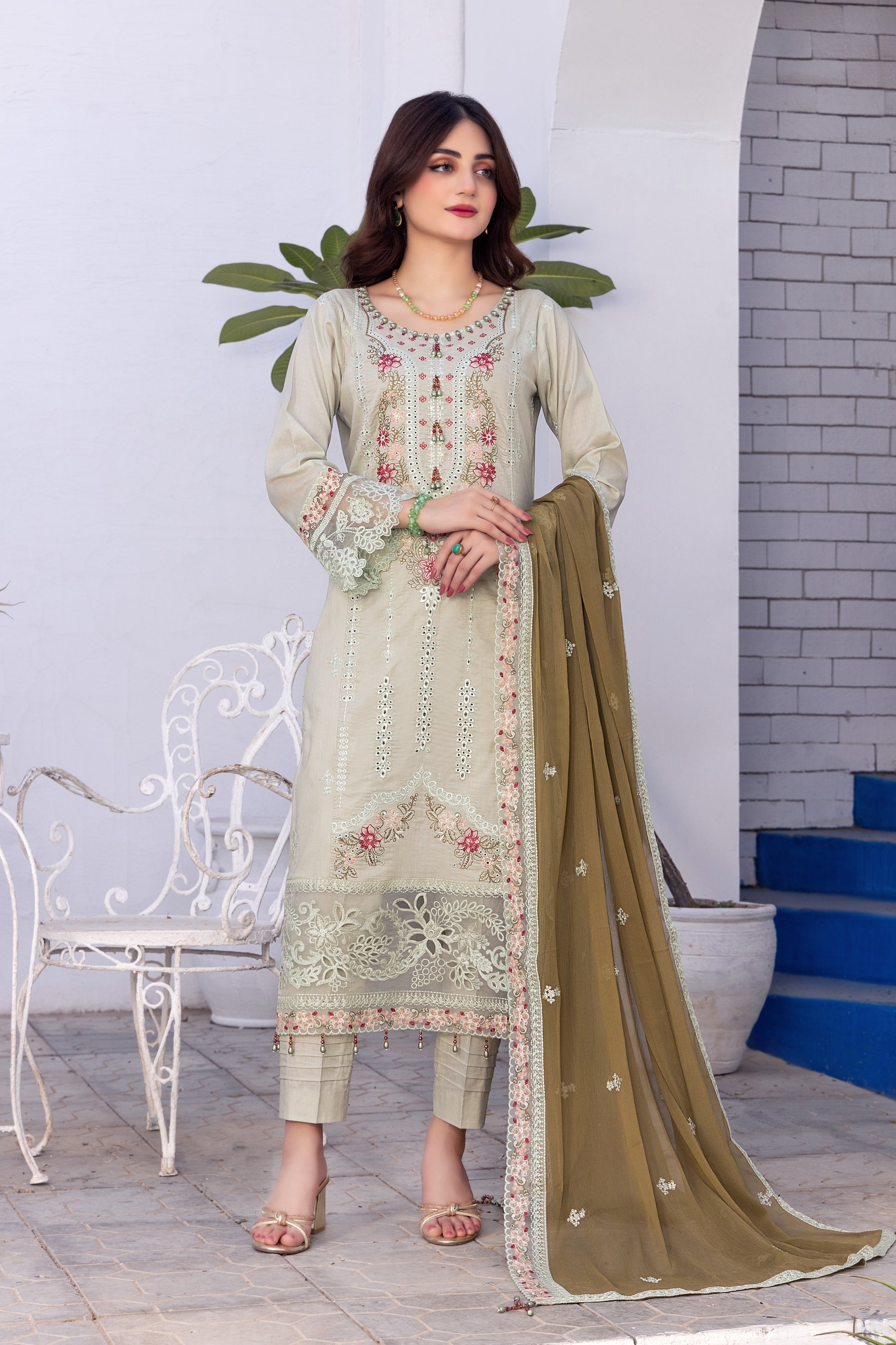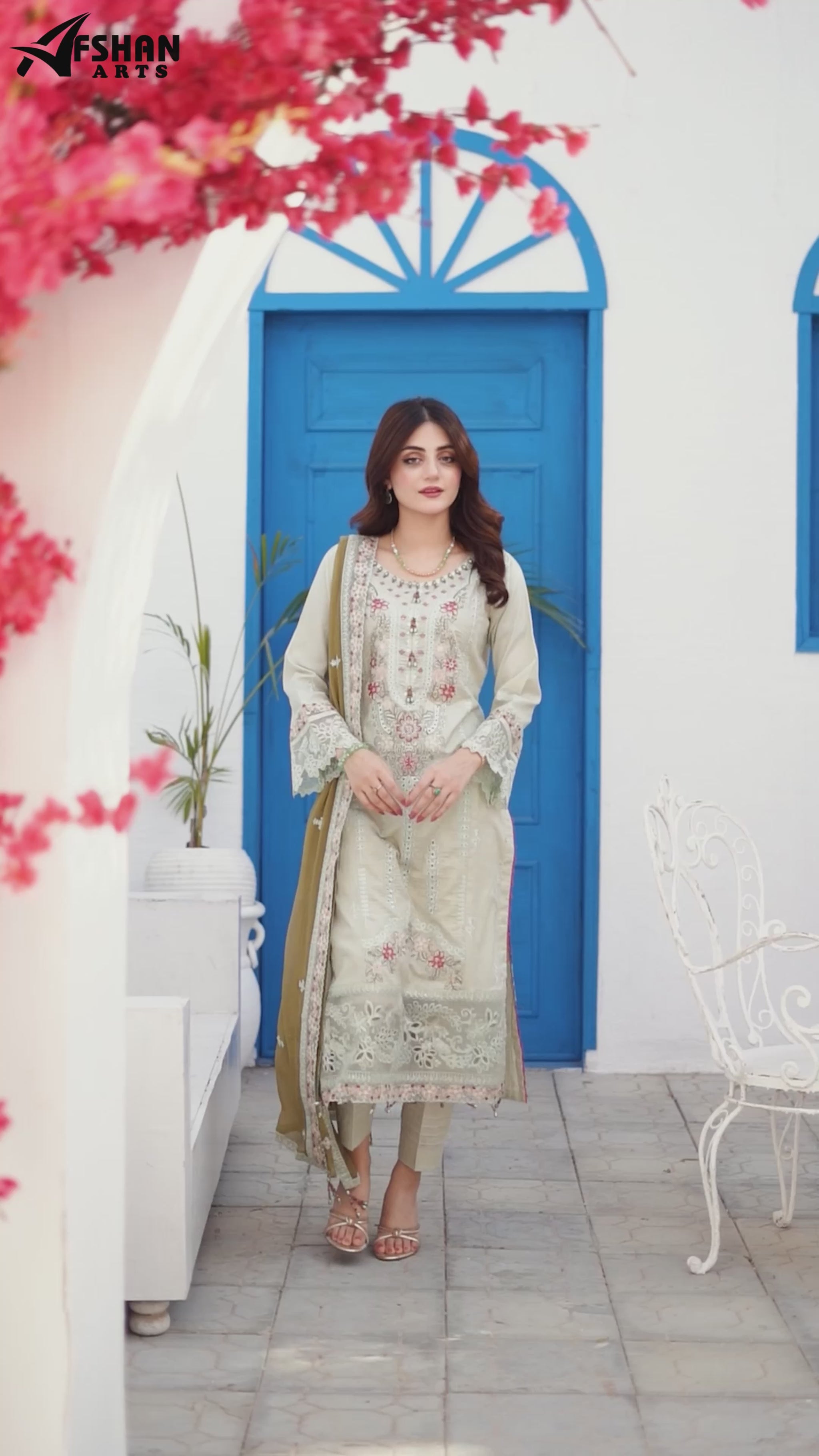 Fabric: Embroidered Cotton Chicken Kaari Shirt, Embroidered Chiffon dupatta, Plain Cotton trouser