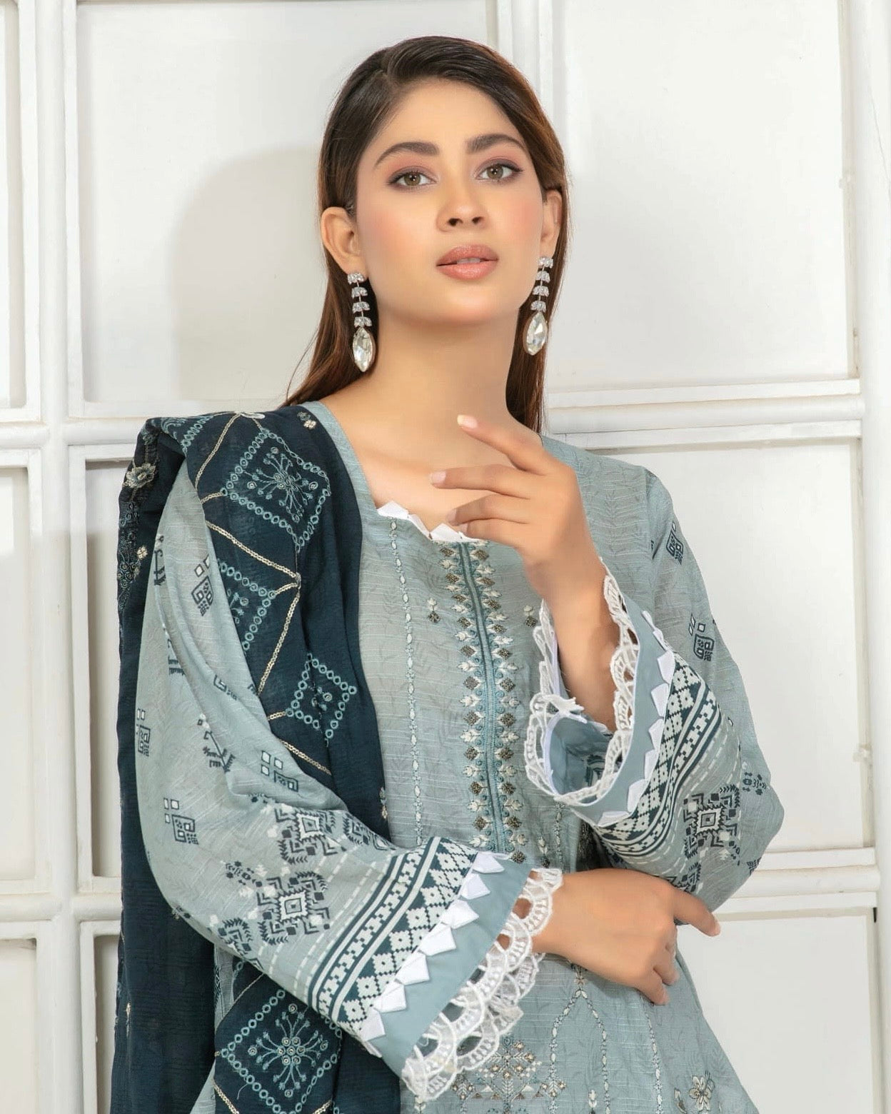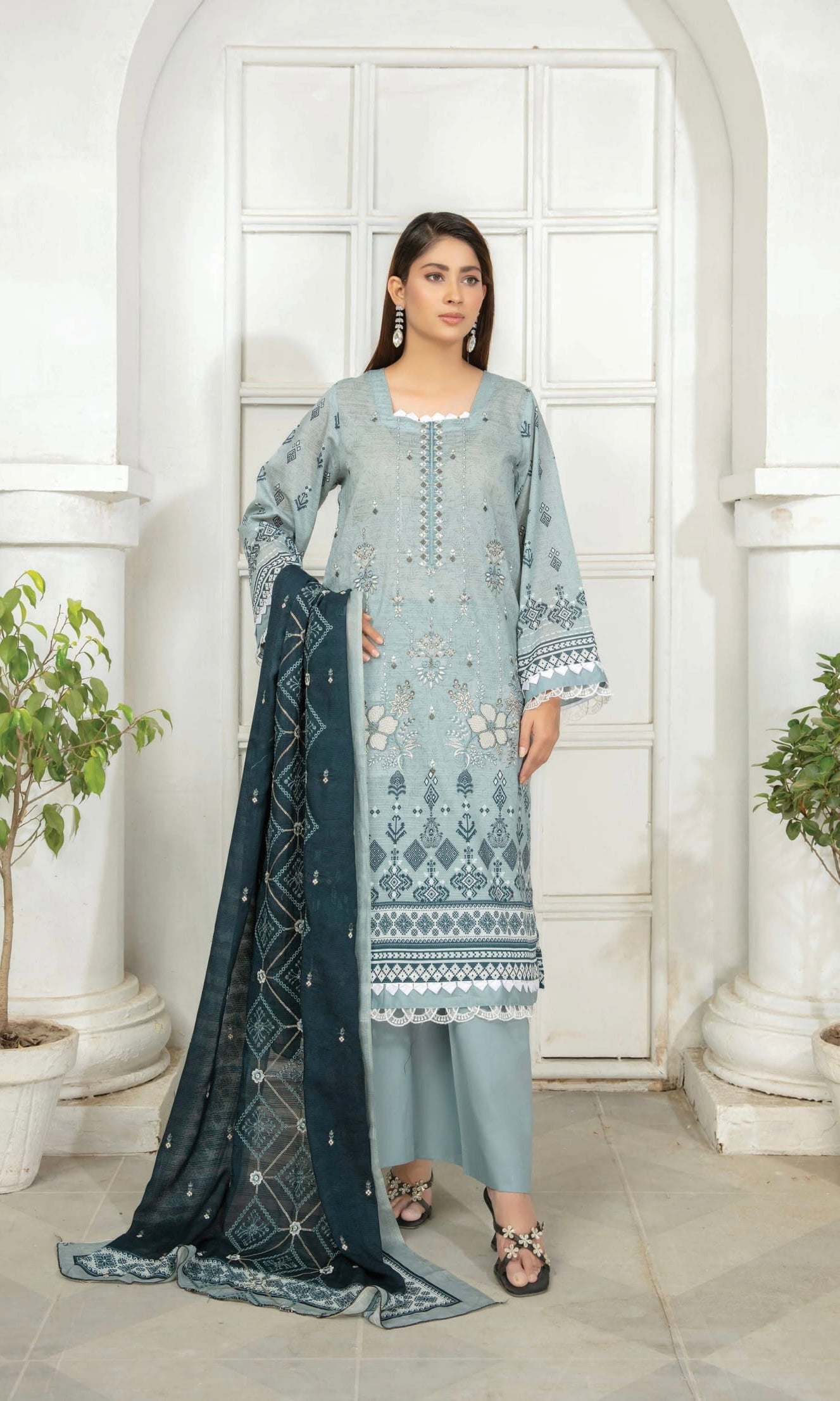 Fabric: Digital Printed & Embroidered Bana Dora Lawn Shirts, Digital Printed & Embroidered Century Dupatta, Plain Cotton Trouser