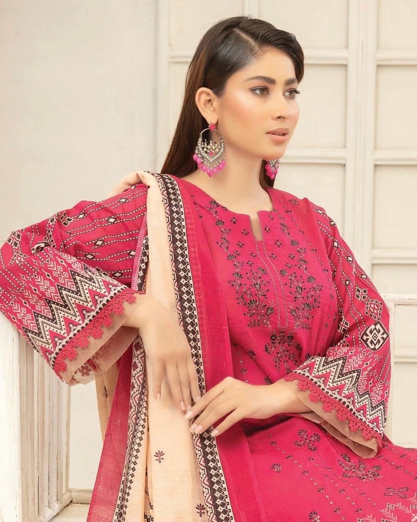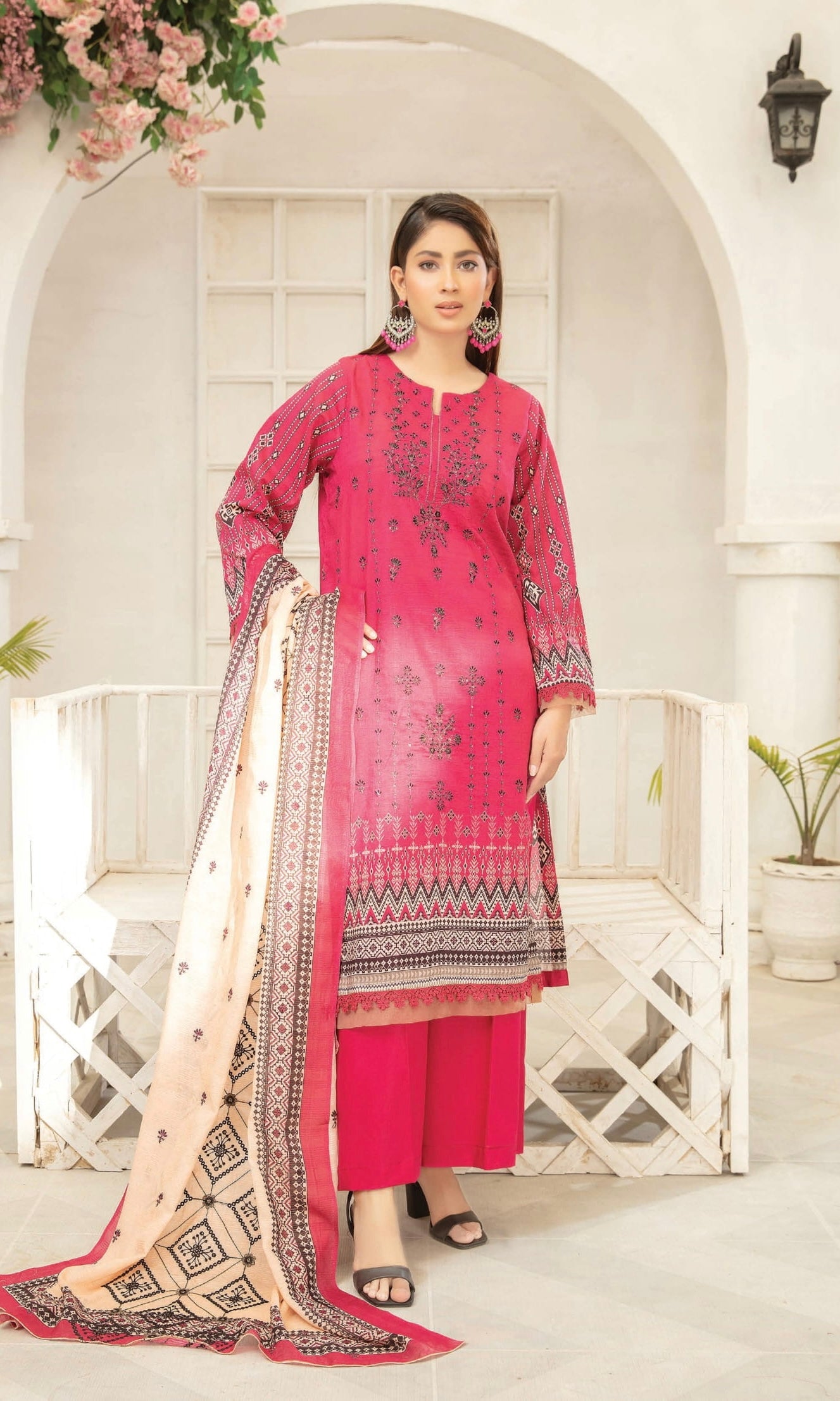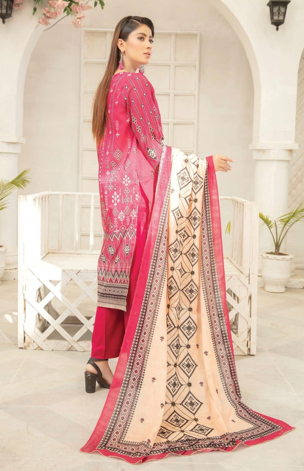 Fabric: Digital Printed & Embroidered Bana Dora Lawn Shirts, Digital Printed & Embroidered Century Dupatta, Plain Cotton Trouser