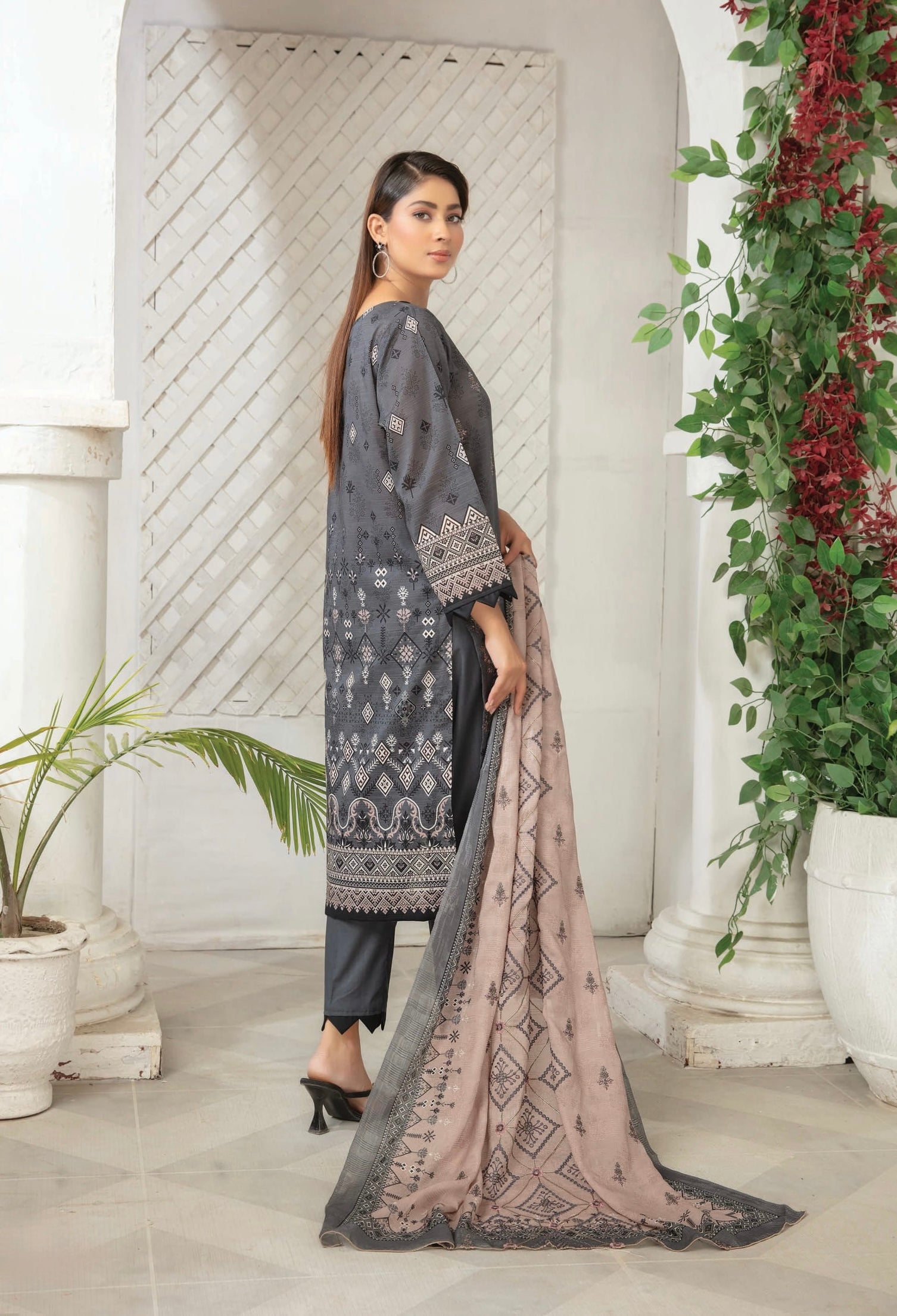 Fabric: Digital Printed & Embroidered Bana Dora Lawn Shirts, Digital Printed & Embroidered Century Dupatta, Plain Cotton Trouser