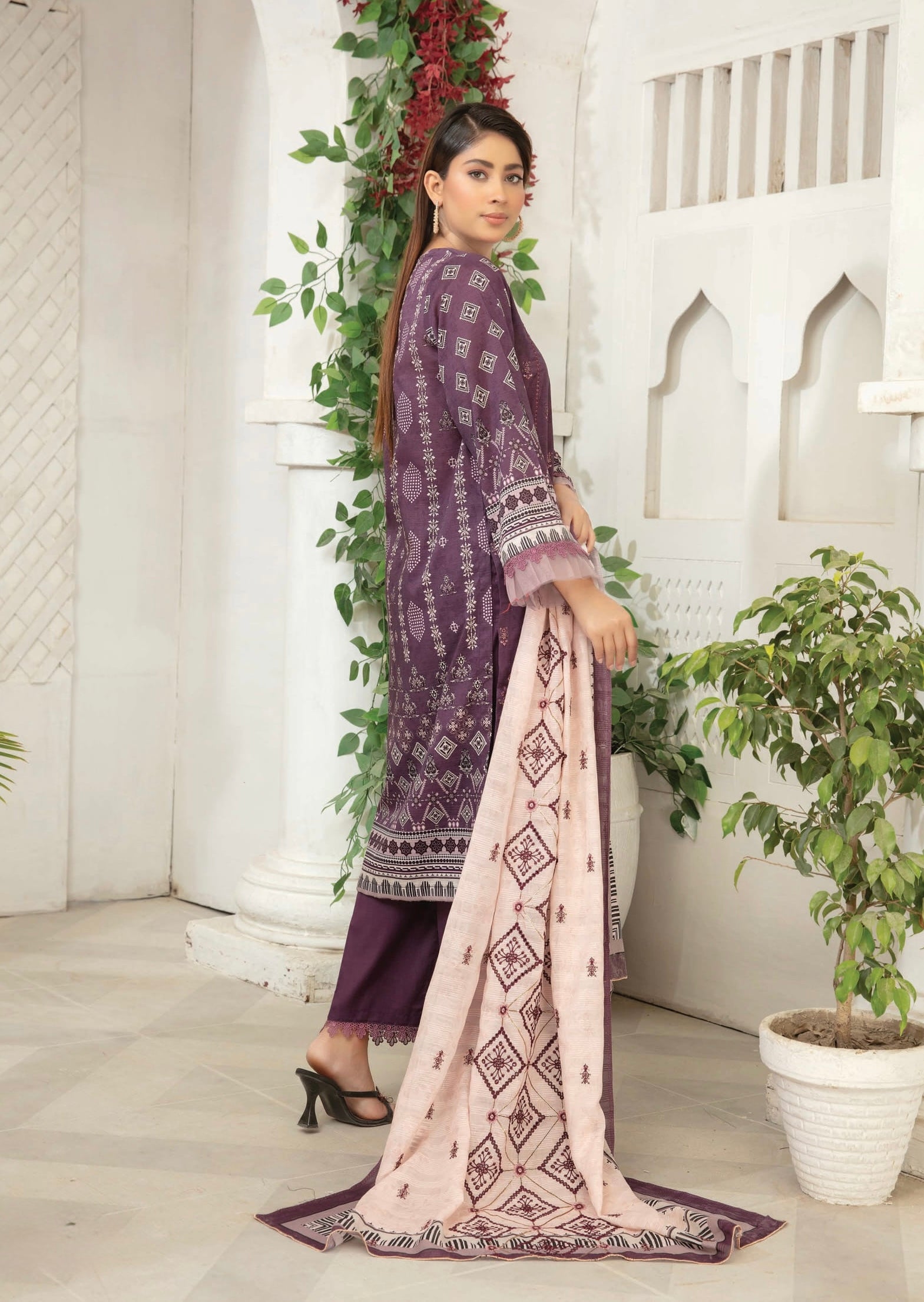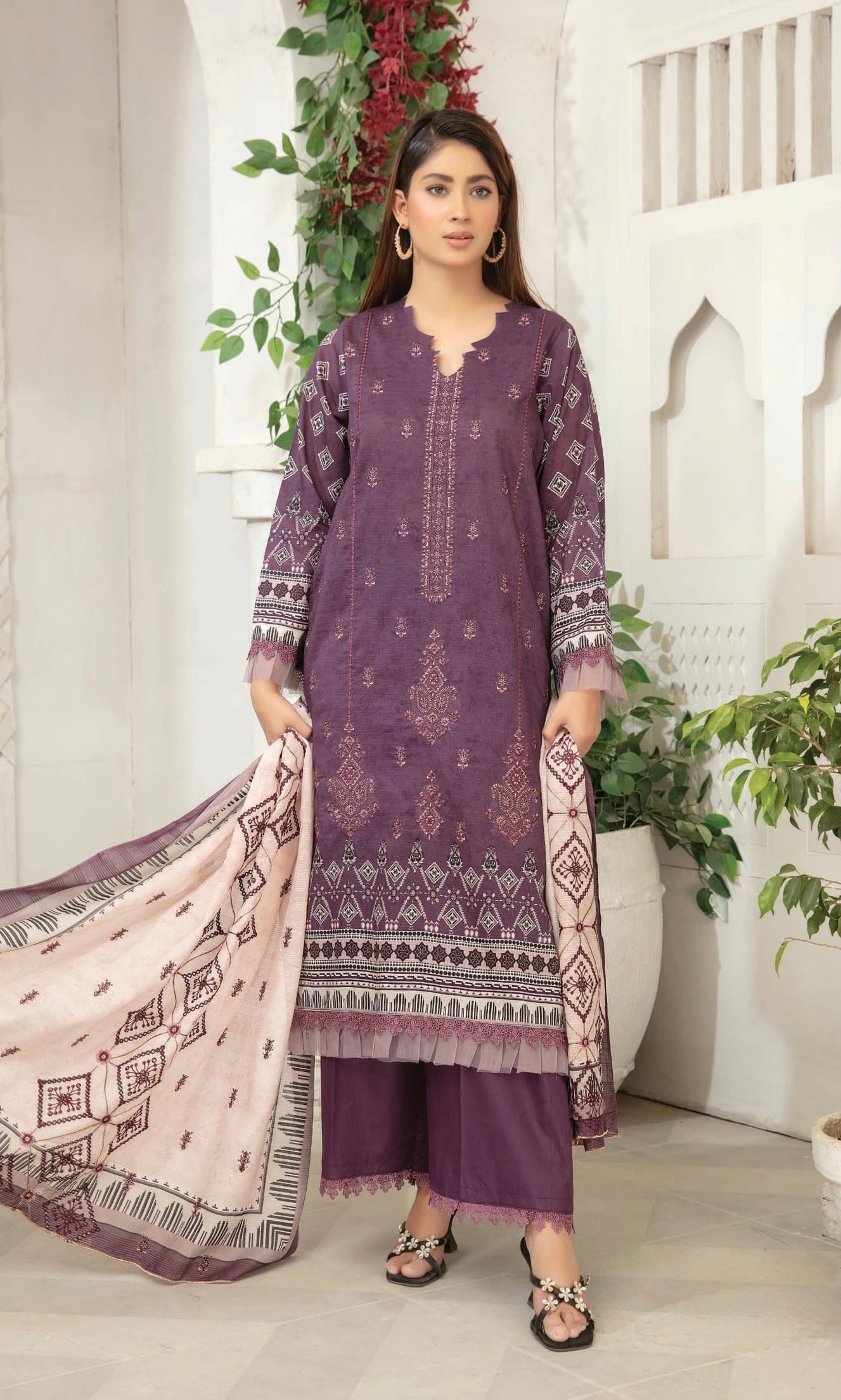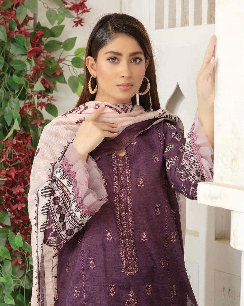 Fabric: Digital Printed & Embroidered Bana Dora Lawn Shirts, Digital Printed & Embroidered Century Dupatta, Plain Cotton Trouser