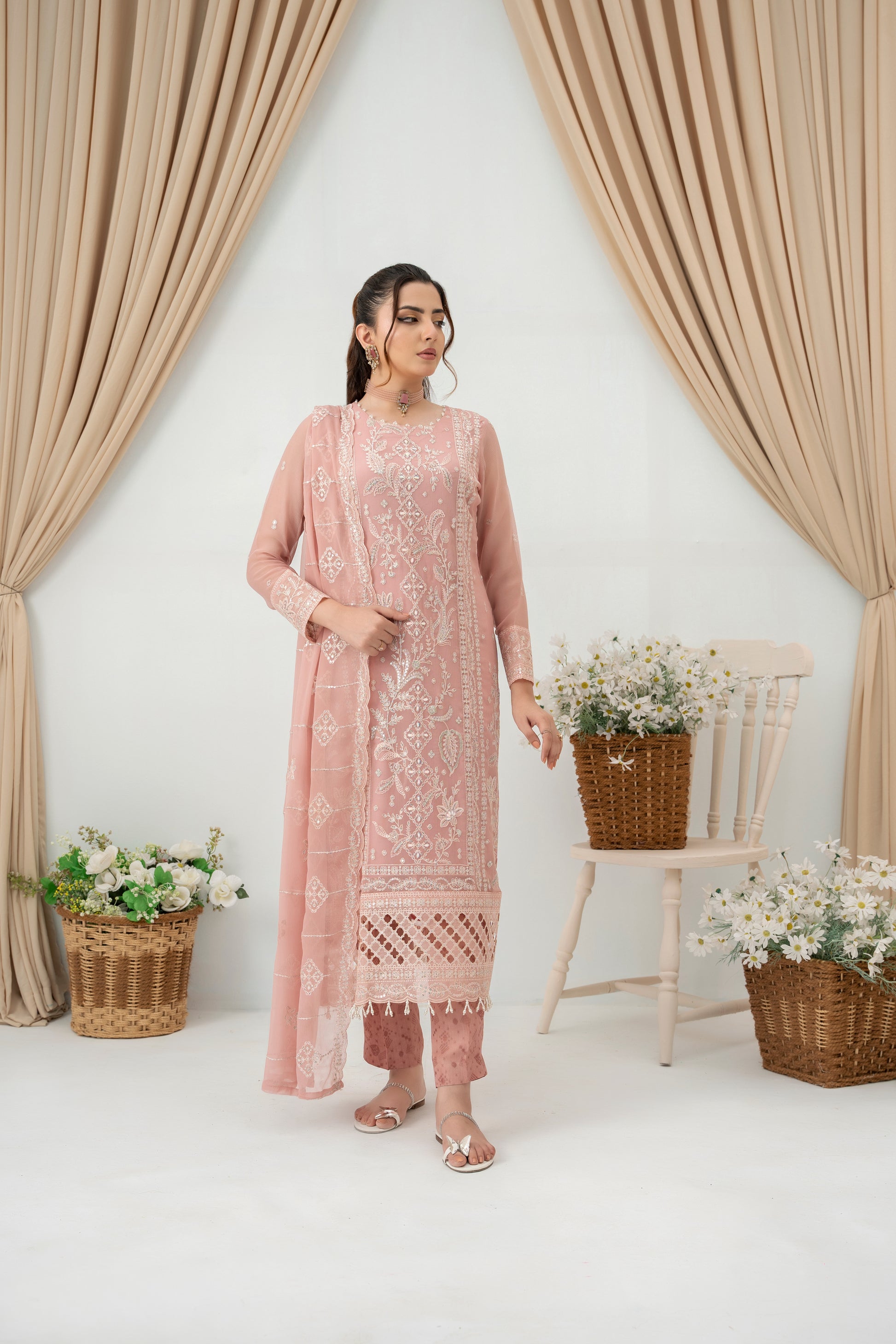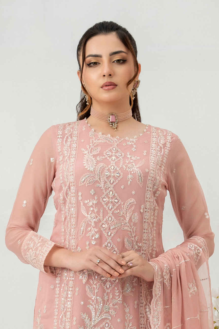 Fabric: Embroidered Chiffon Shirt, Embroidered Chiffon Dupatta, Jacquard Viscose Trouser