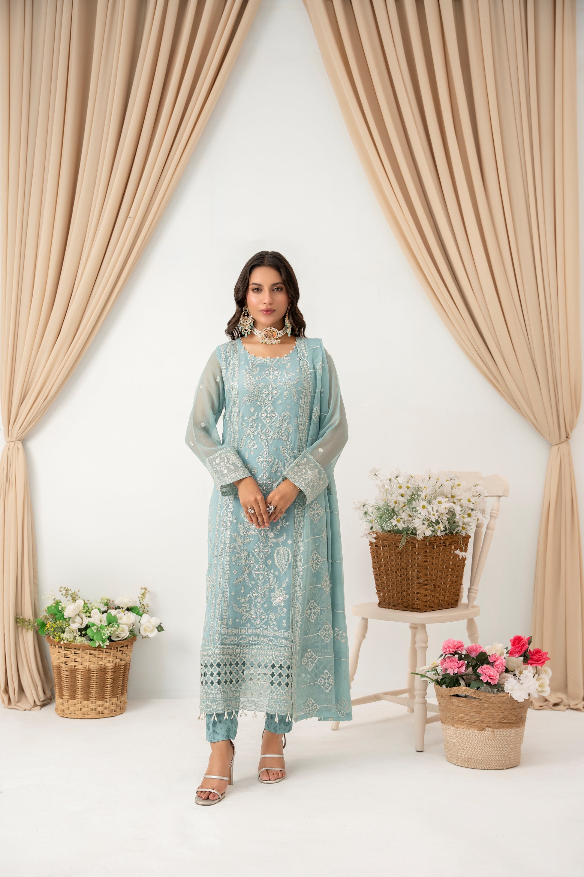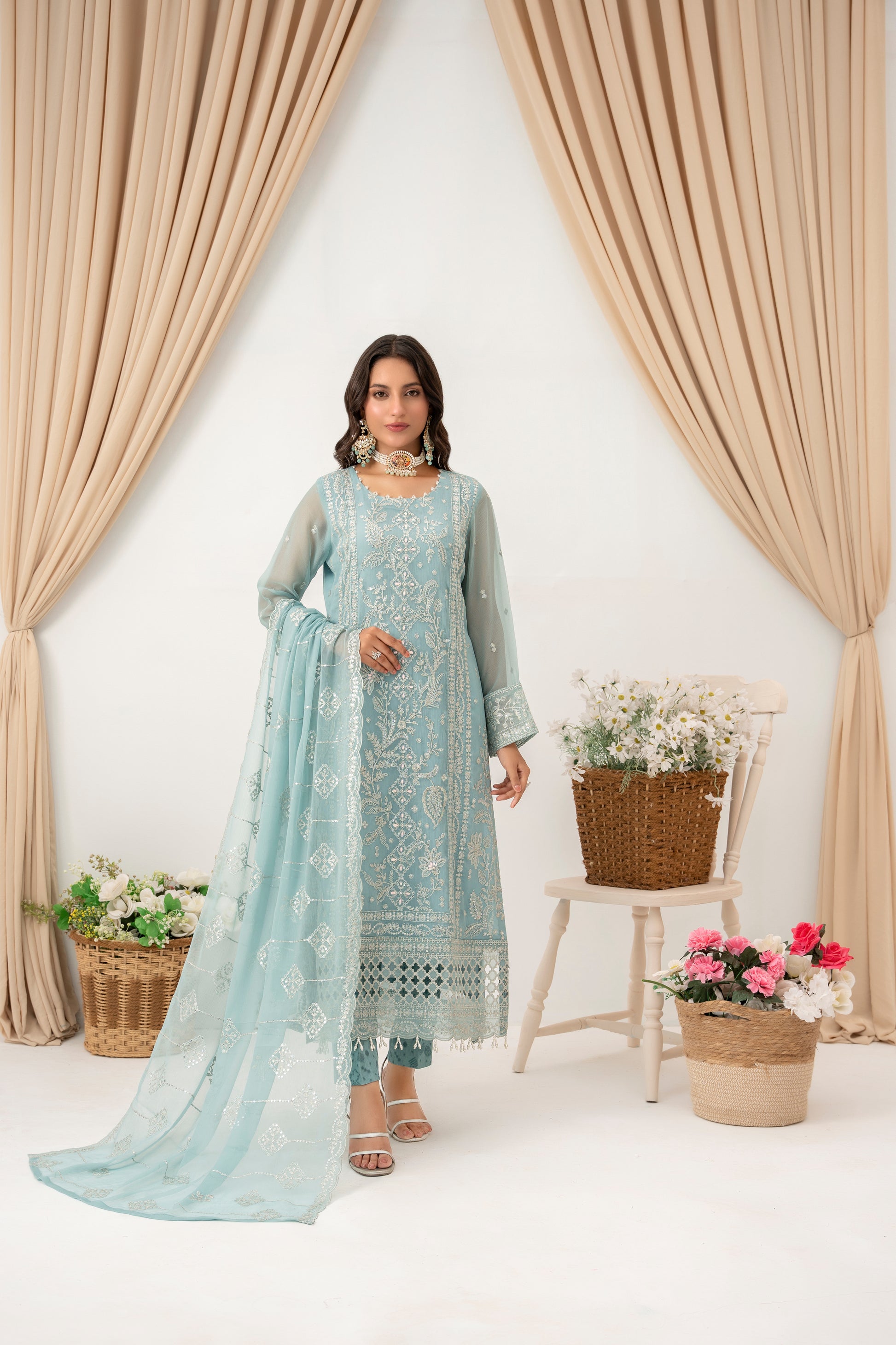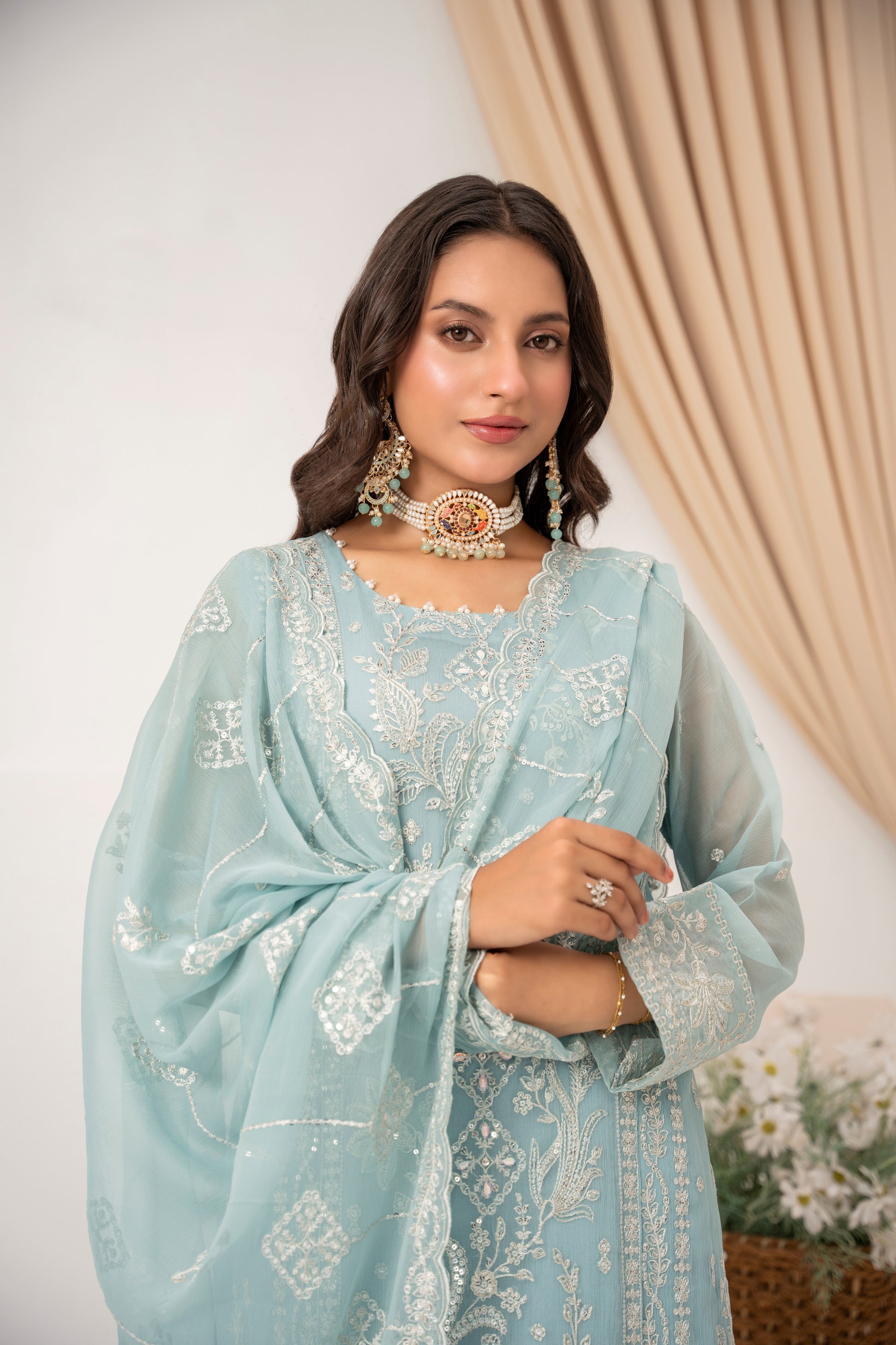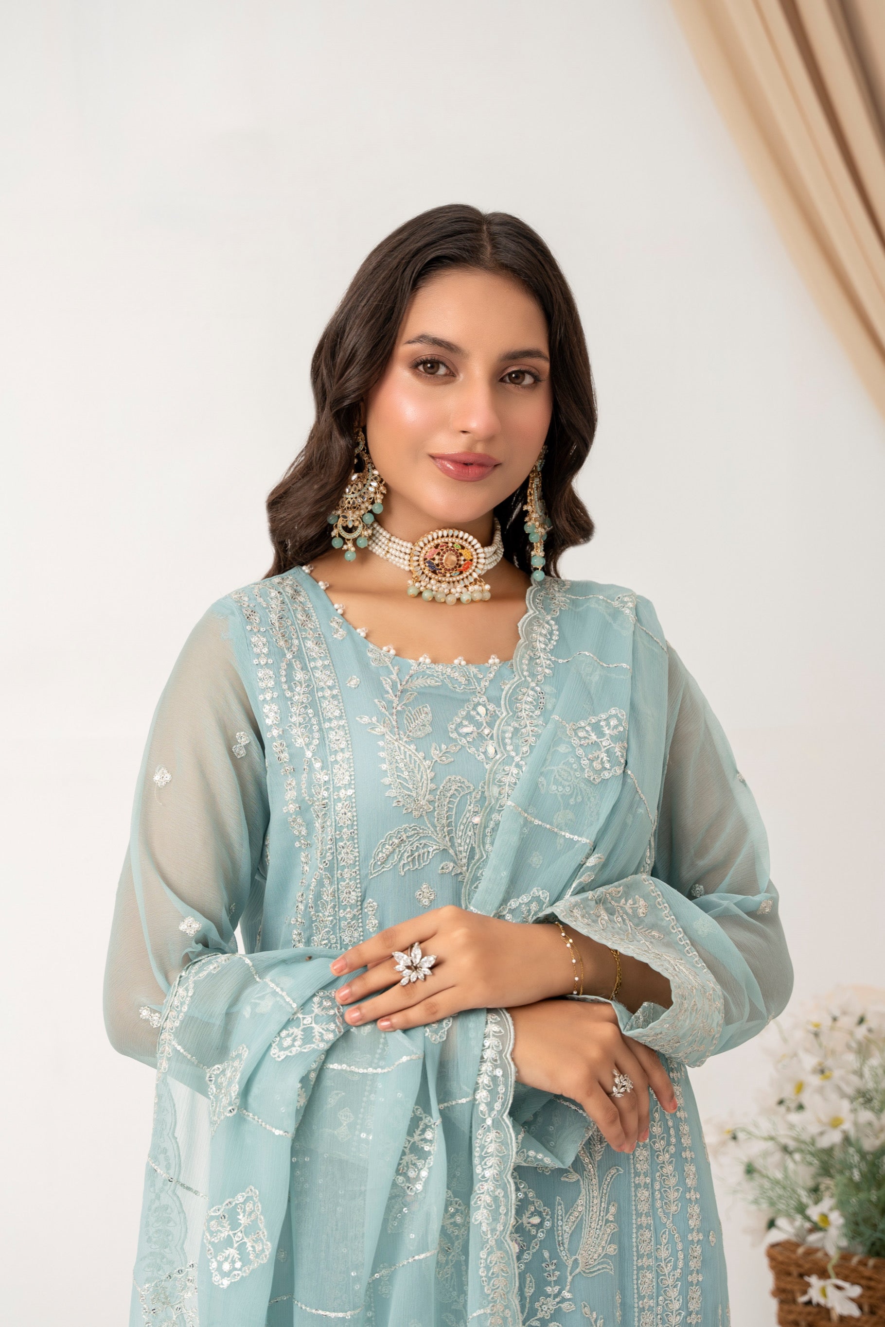 Fabric: Embroidered Chiffon Shirt, Embroidered Chiffon Dupatta, Jacquard Viscose Trouser