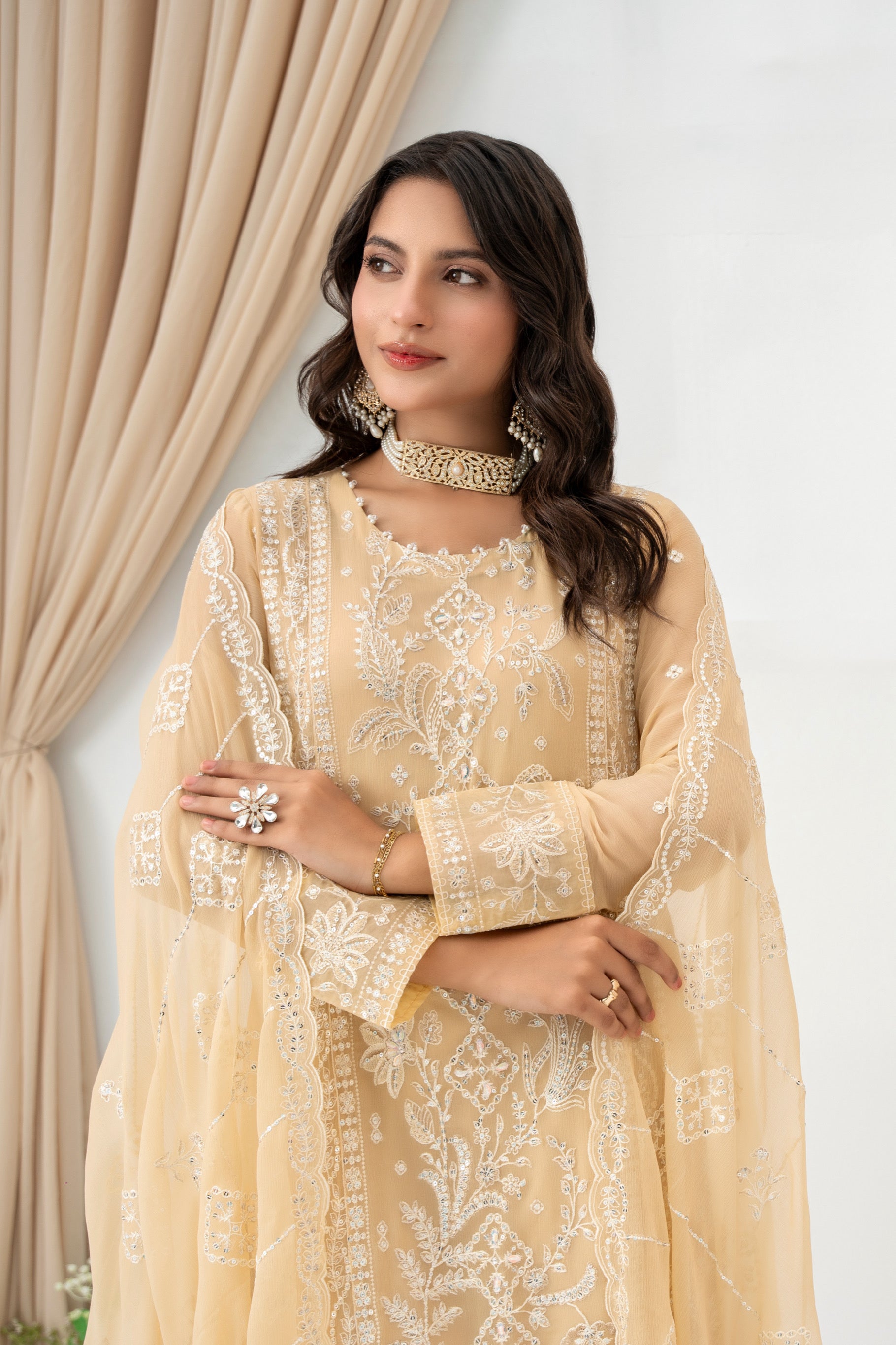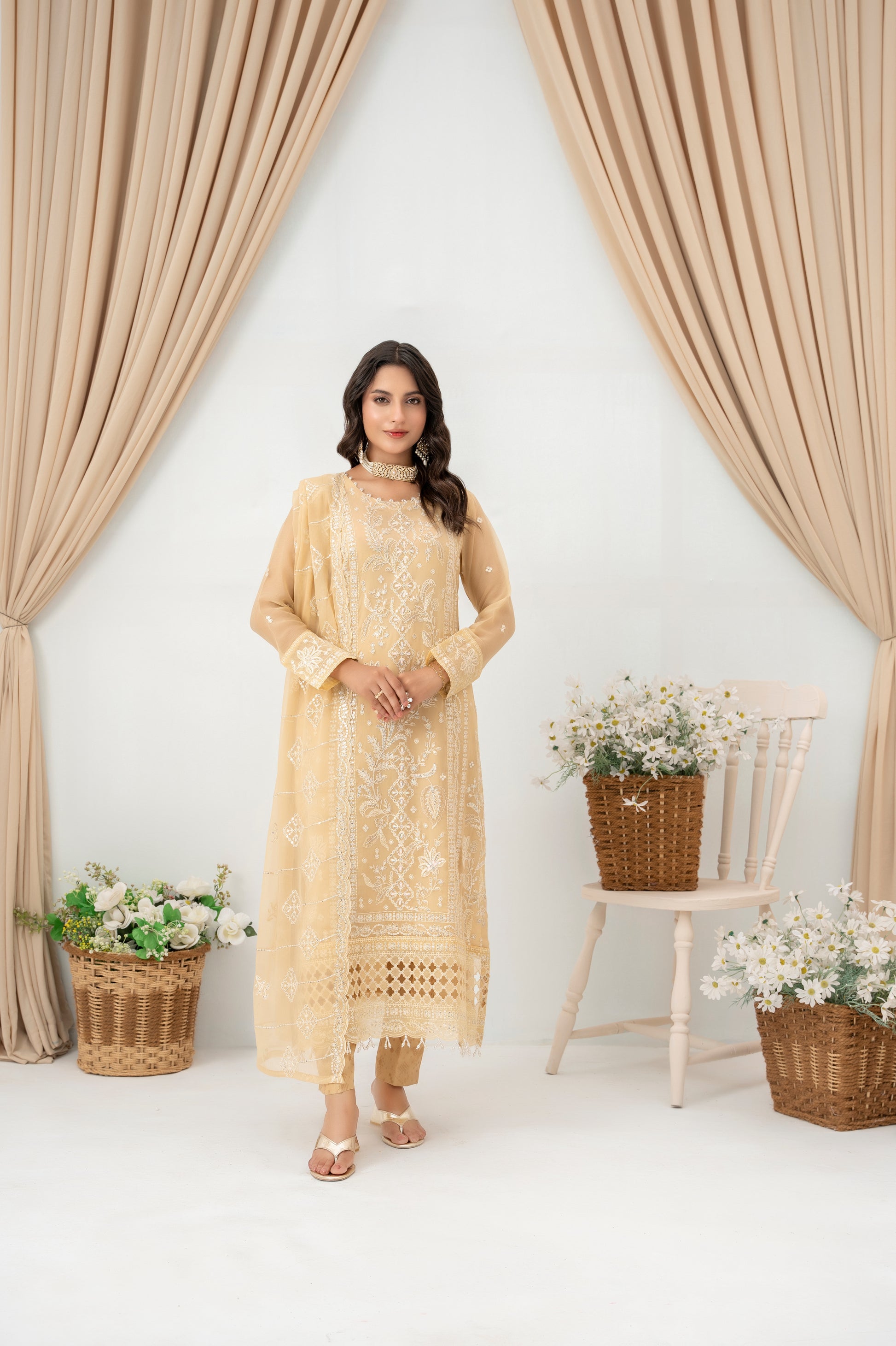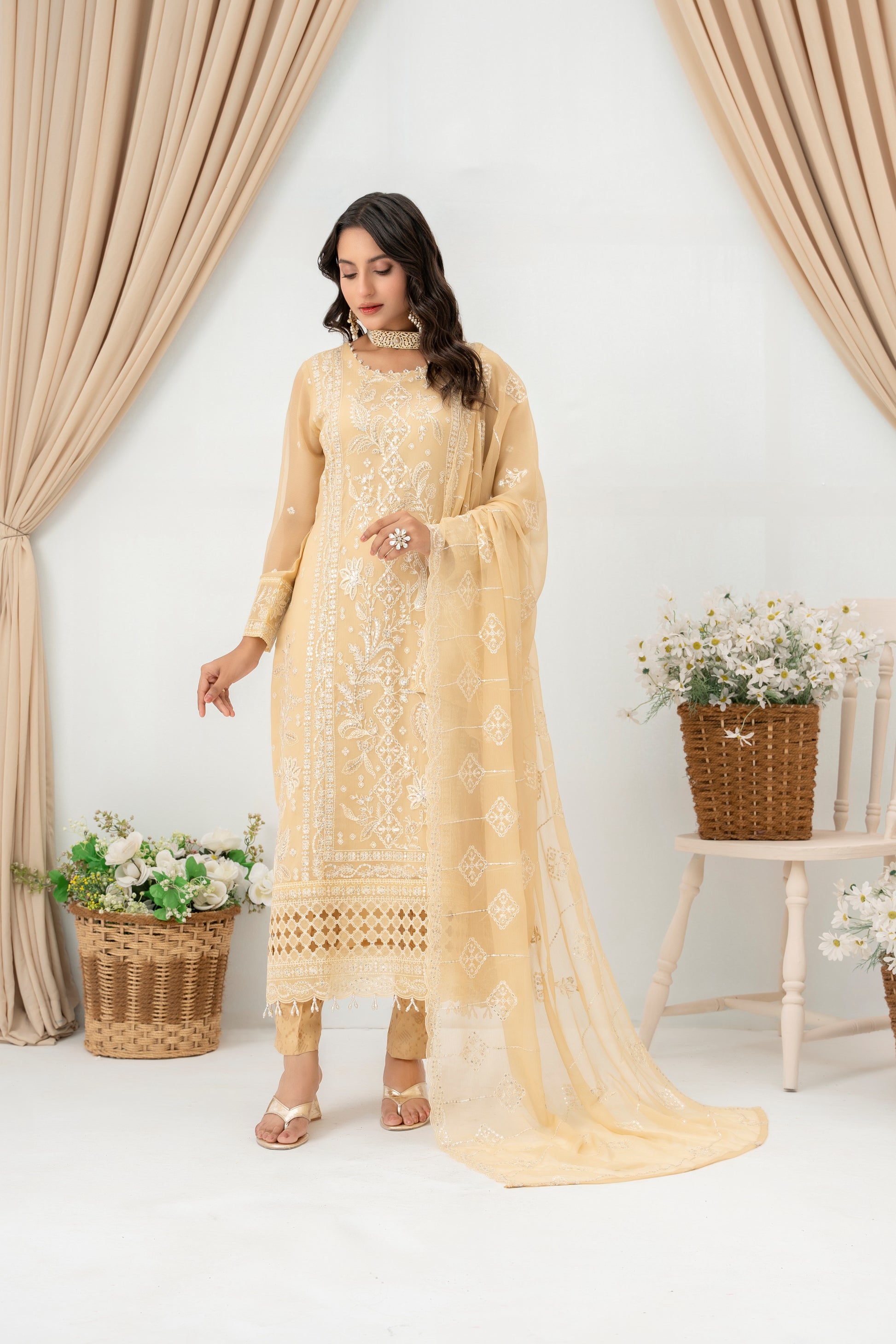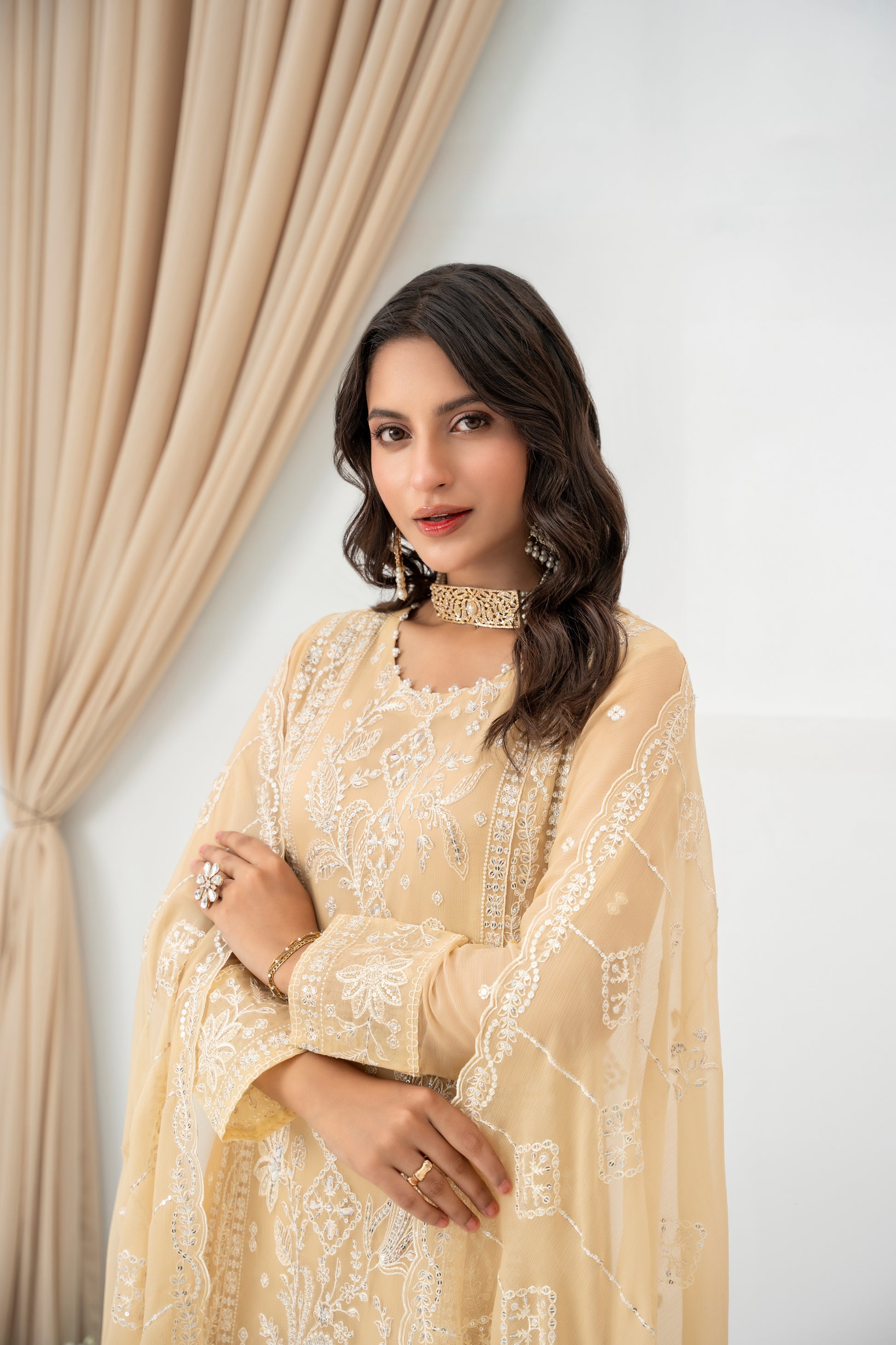 Fabric: Embroidered Chiffon Shirt, Embroidered Chiffon Dupatta, Jacquard Viscose Trouser