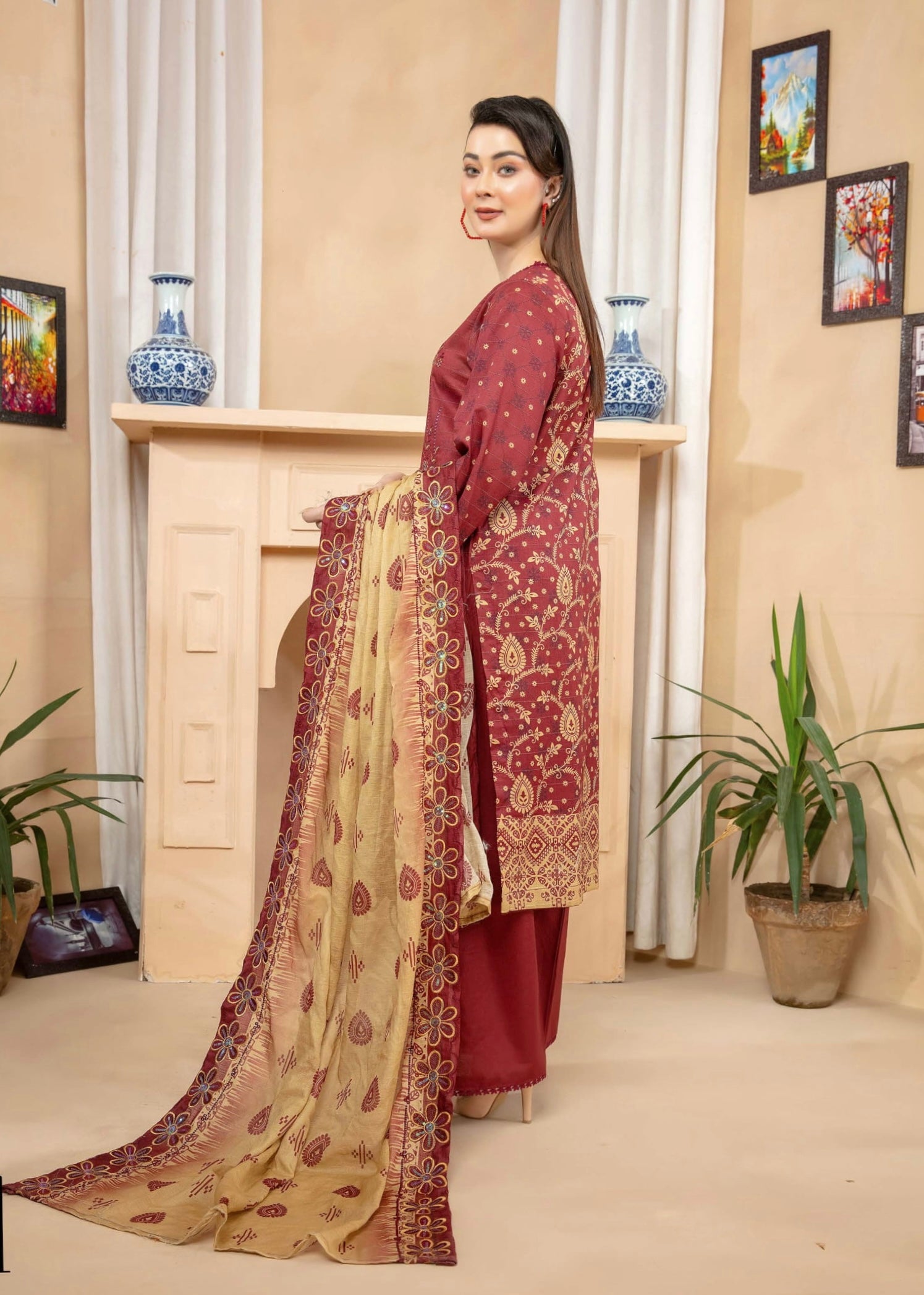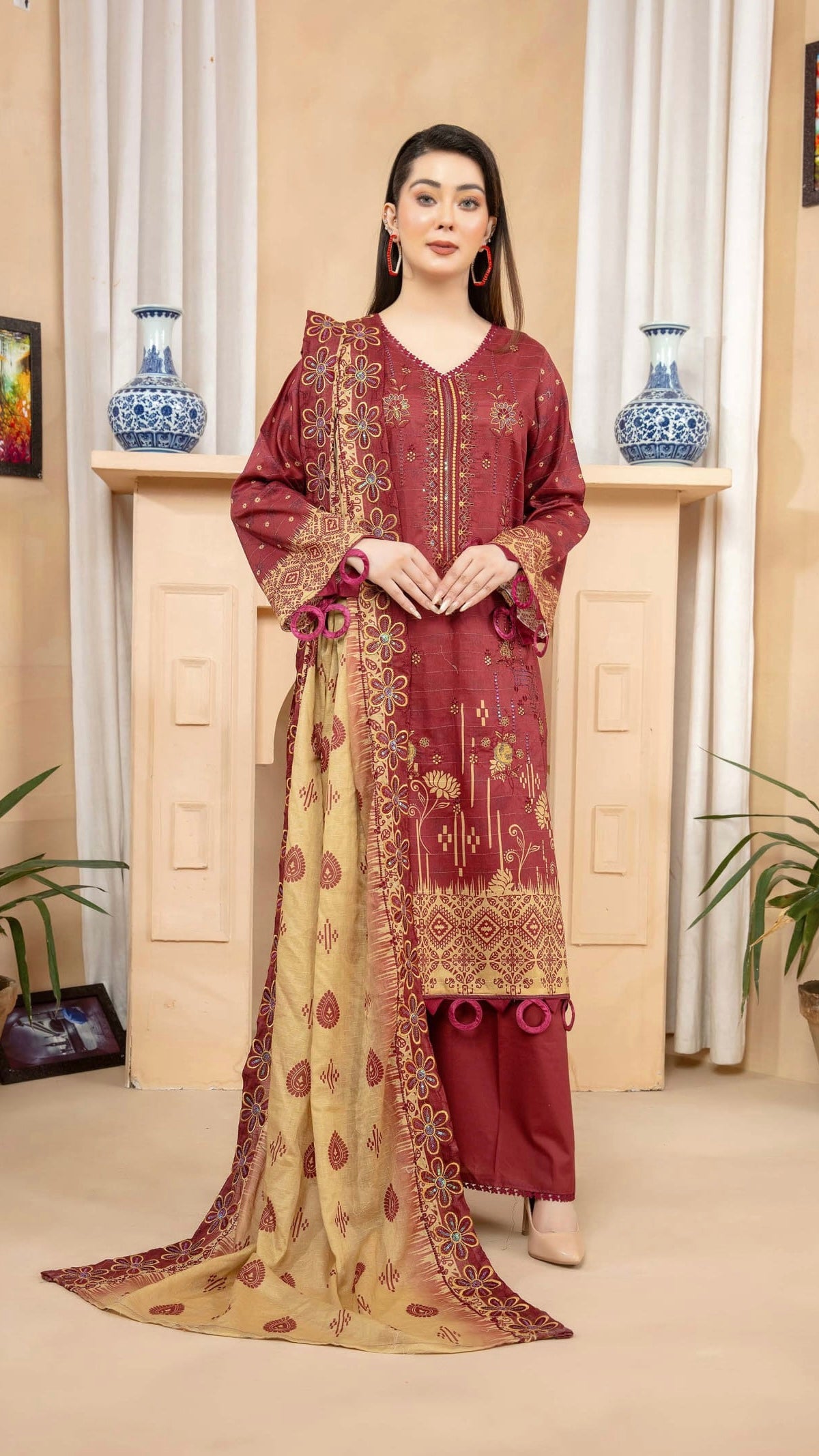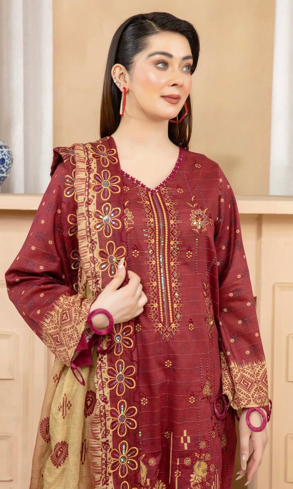 Fabric: Digital Printed & Embroidered Lawn Shirts, Digital Printed & Embroidered Cutwork Voil Dupatta, Plain Cotton Trouser