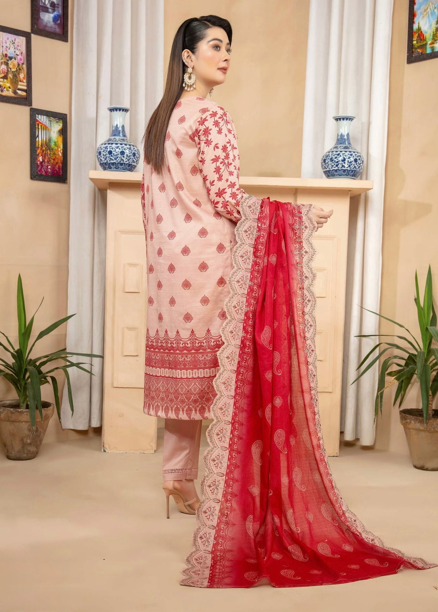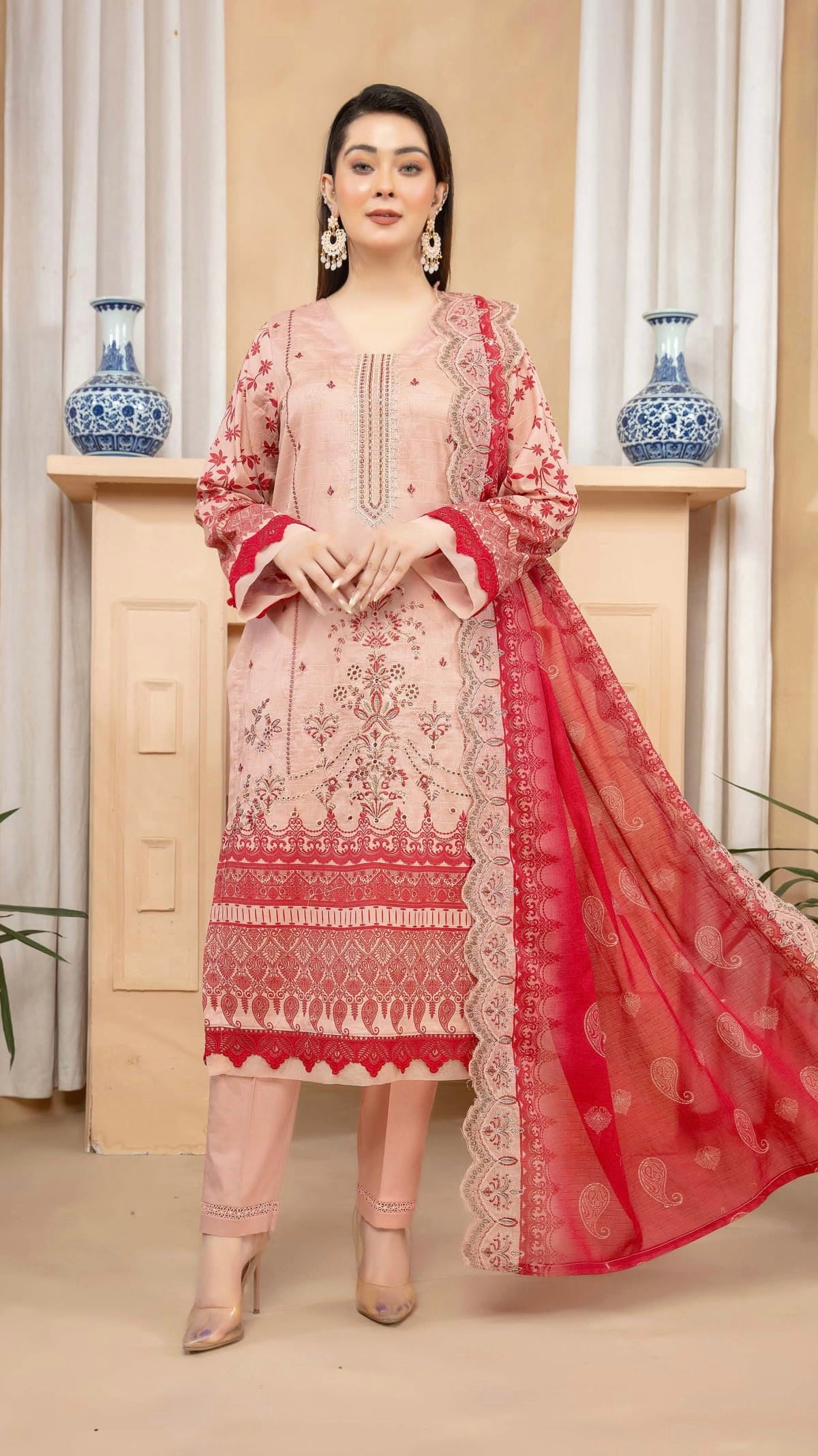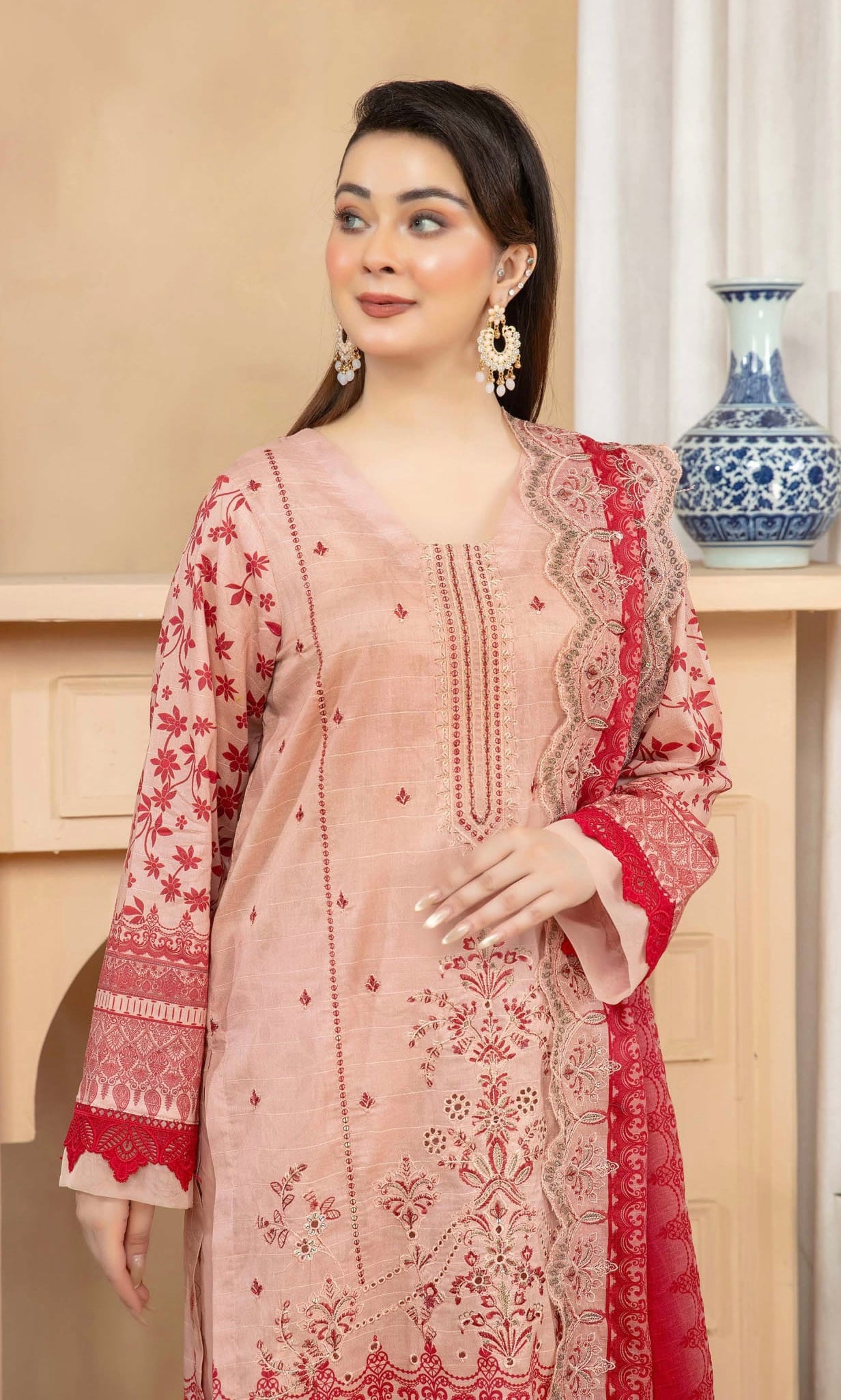 Fabric: Digital Printed & Embroidered Lawn Shirts, Digital Printed & Embroidered Cutwork Voil Dupatta, Plain Cotton Trouser