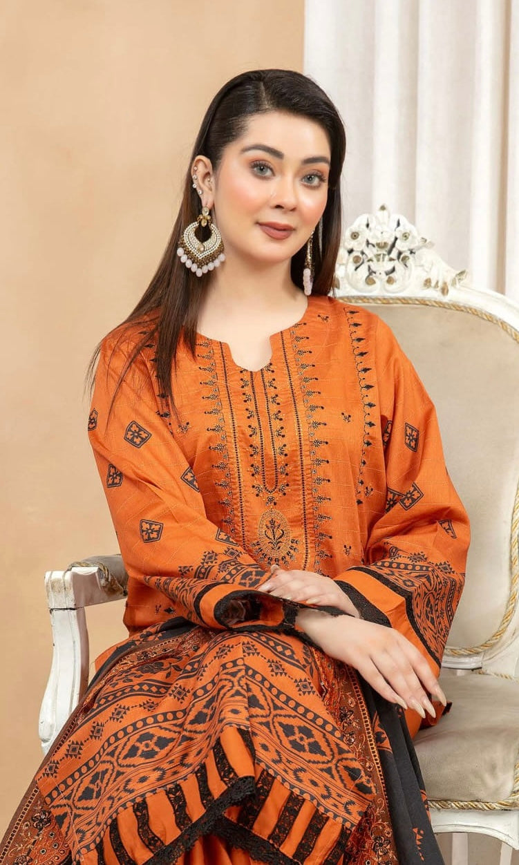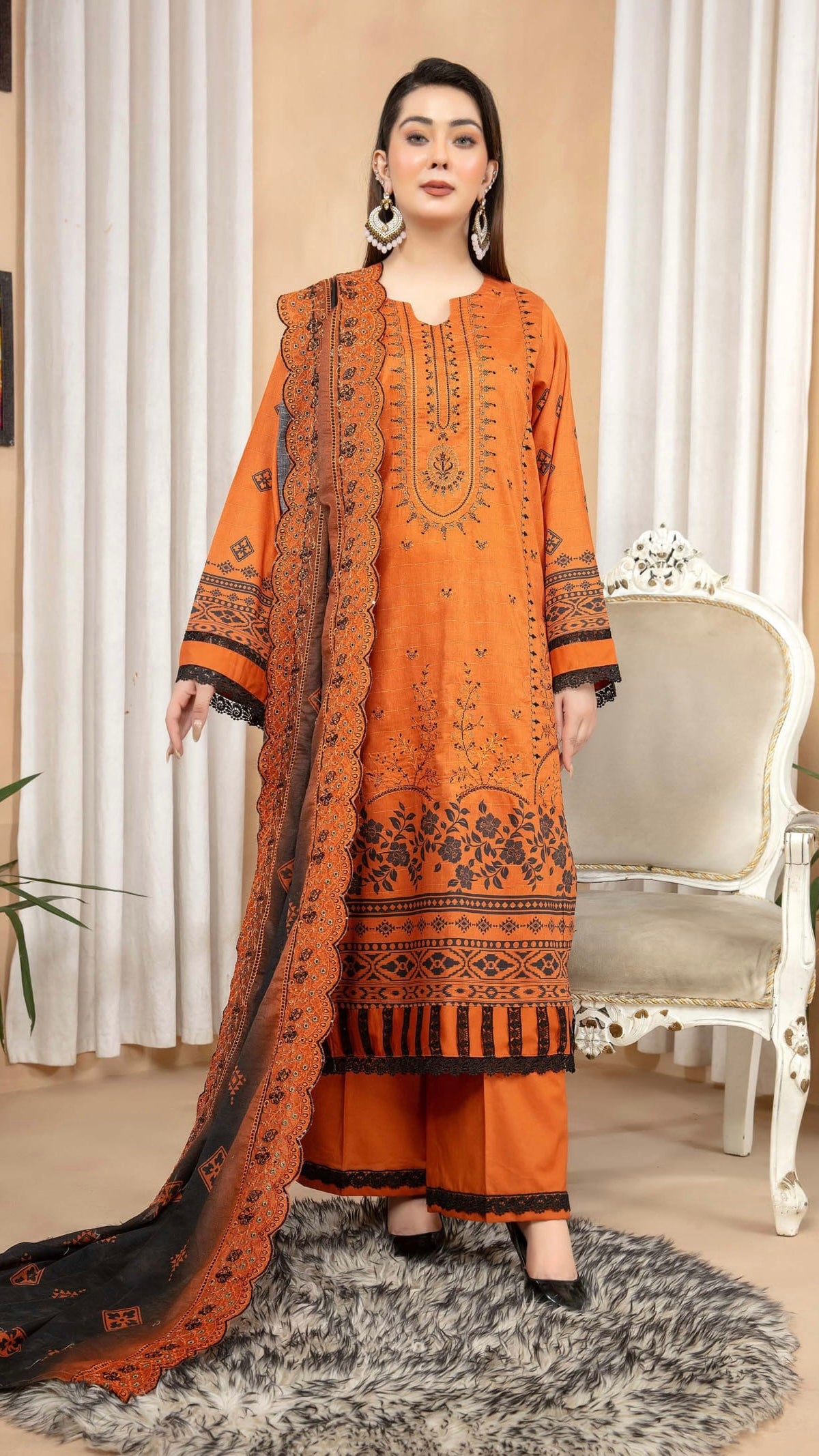 Fabric: Digital Printed & Embroidered Lawn Shirts, Digital Printed & Embroidered Cutwork Voil Dupatta, Plain Cotton Trouser