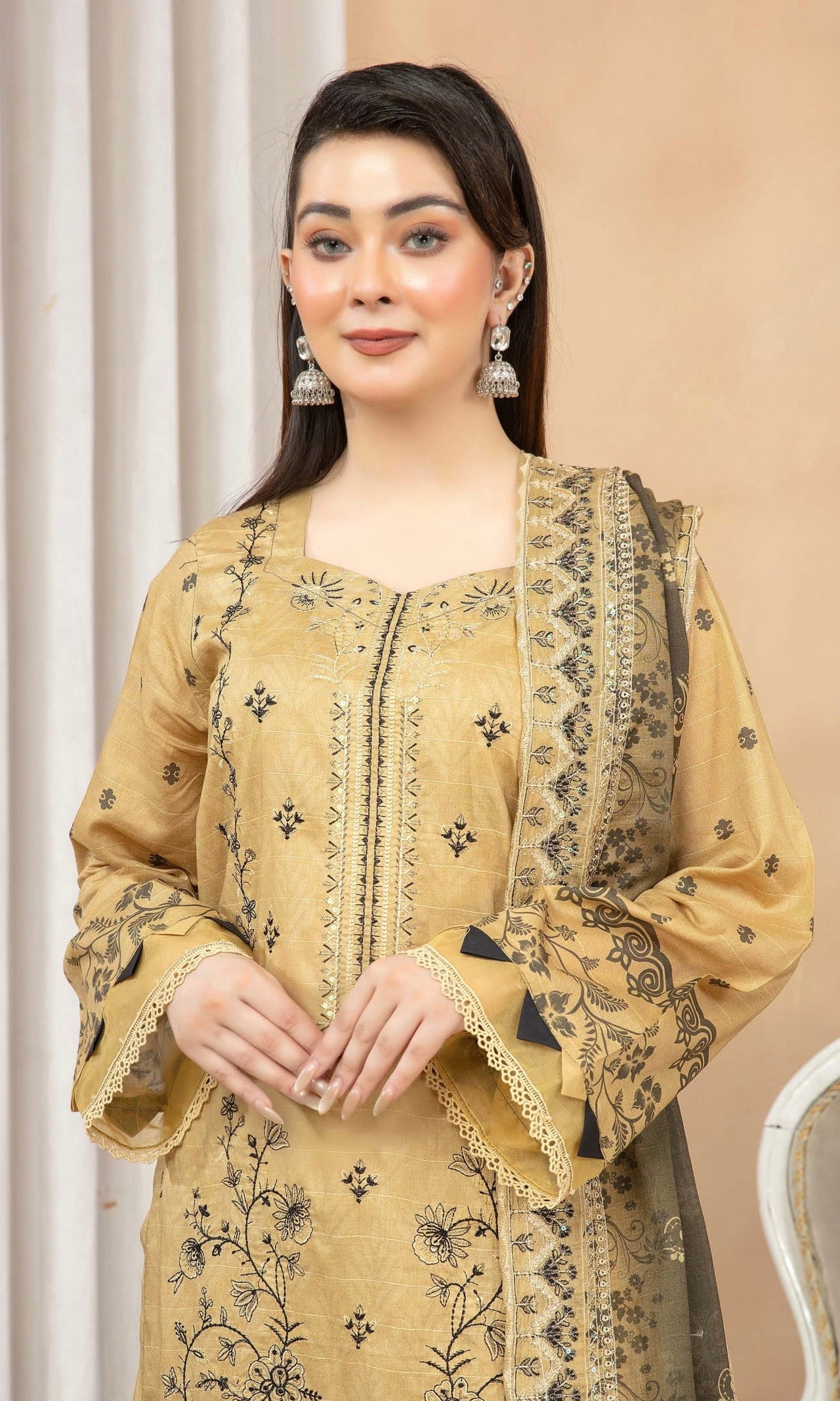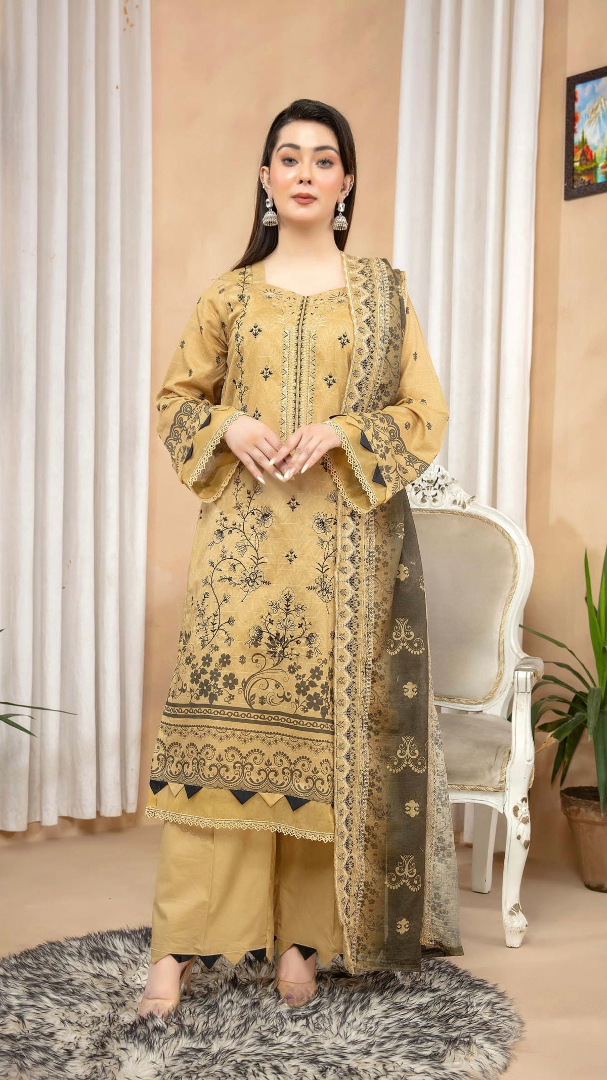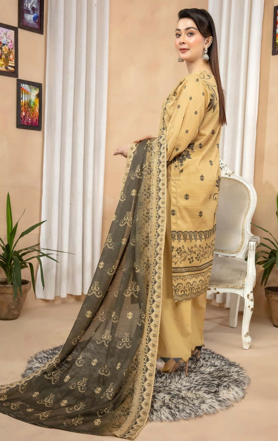 Fabric: Digital Printed & Embroidered Lawn Shirts, Digital Printed & Embroidered Cutwork Voil Dupatta, Plain Cotton Trouser
