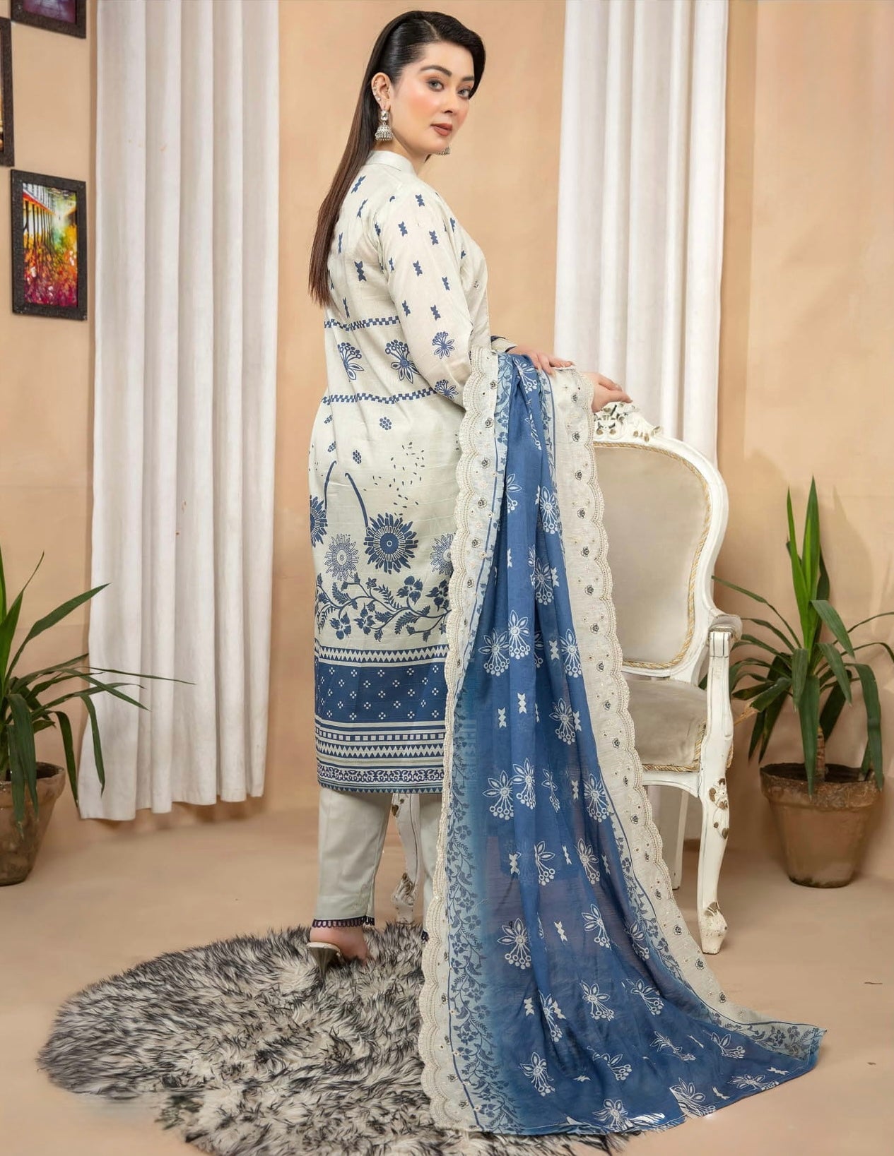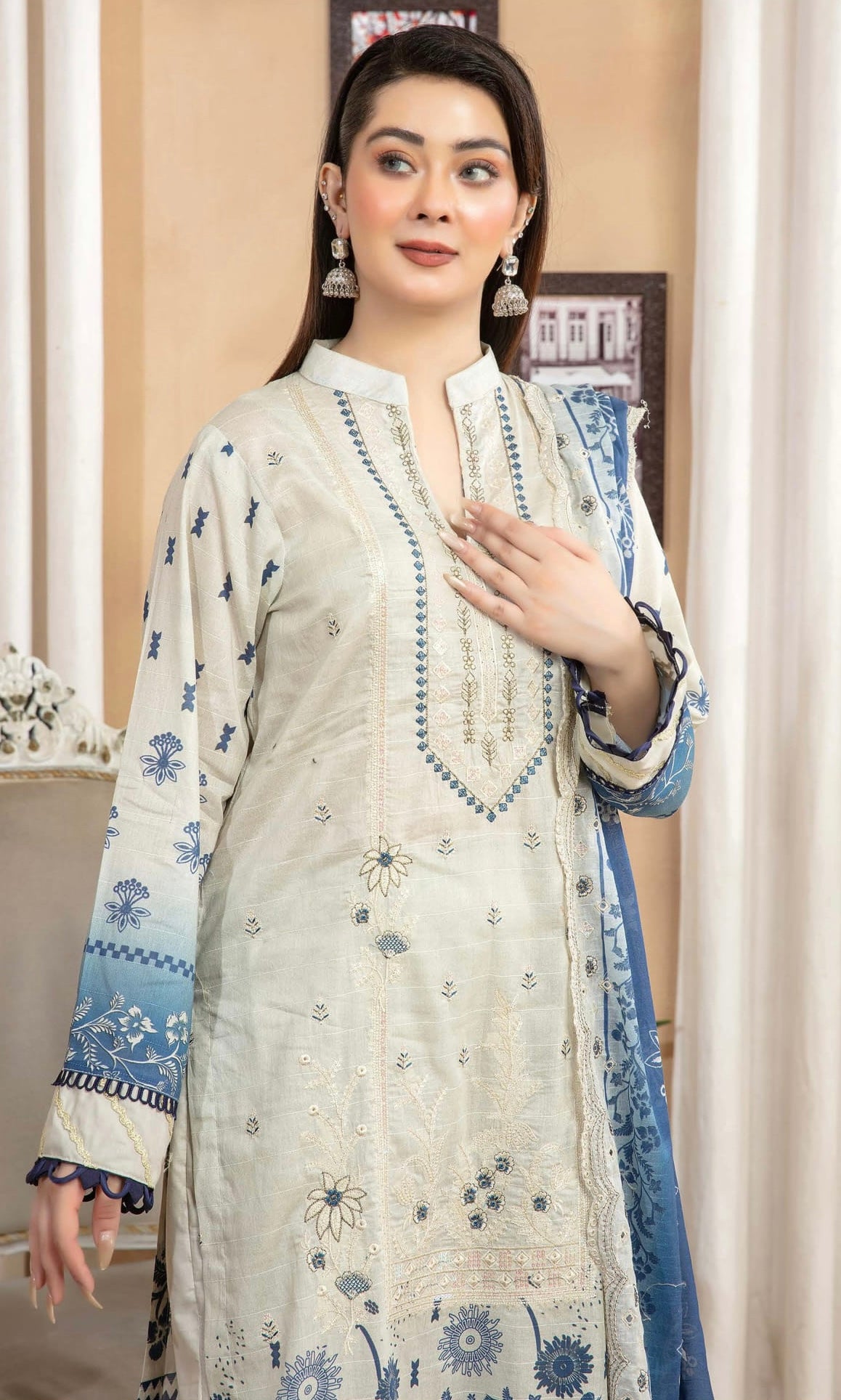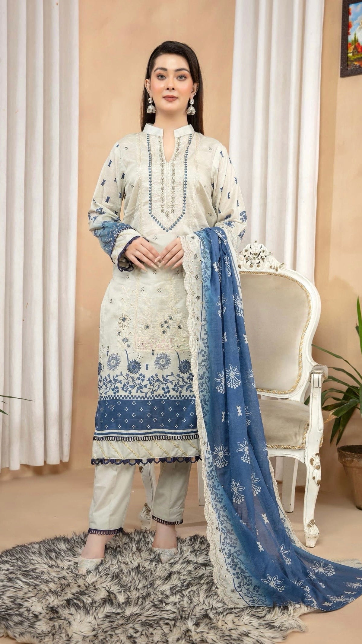 Fabric: Digital Printed & Embroidered Lawn Shirts, Digital Printed & Embroidered Cutwork Voil Dupatta, Plain Cotton Trouser