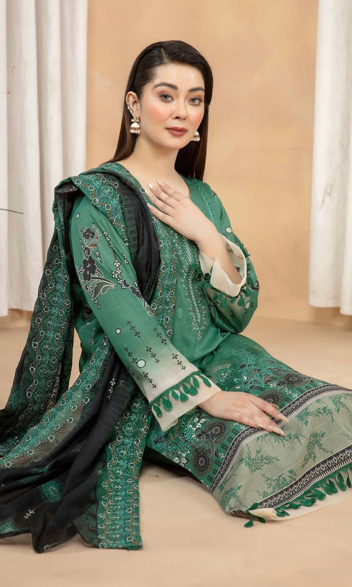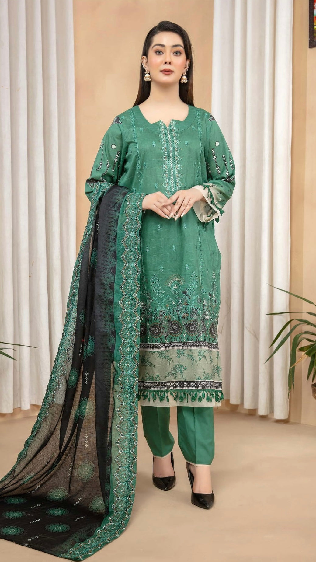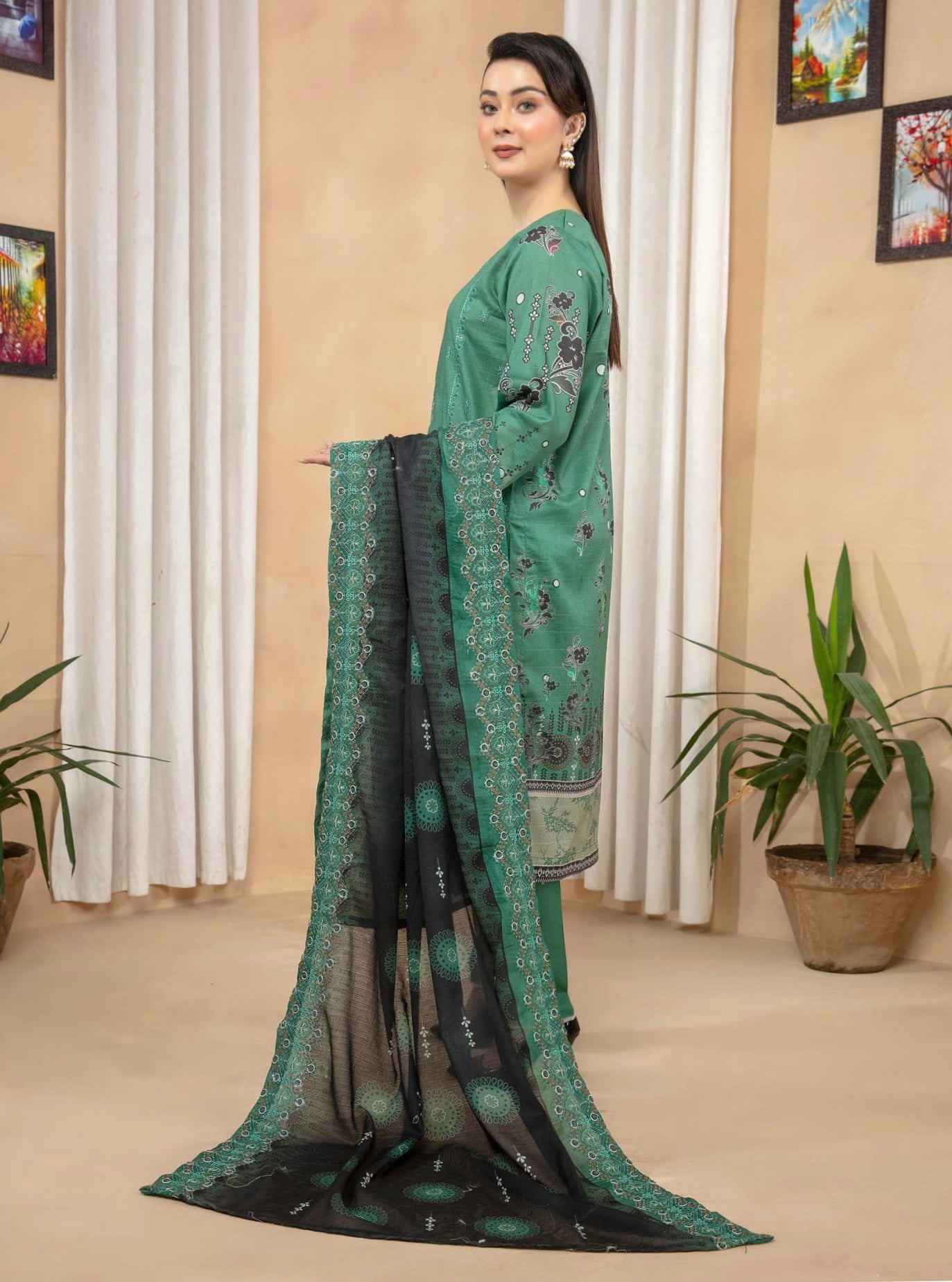 Fabric: Digital Printed & Embroidered Lawn Shirts, Digital Printed & Embroidered Cutwork Voil Dupatta, Plain Cotton Trouser