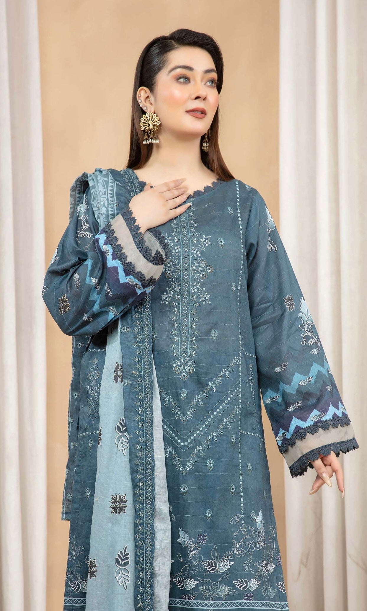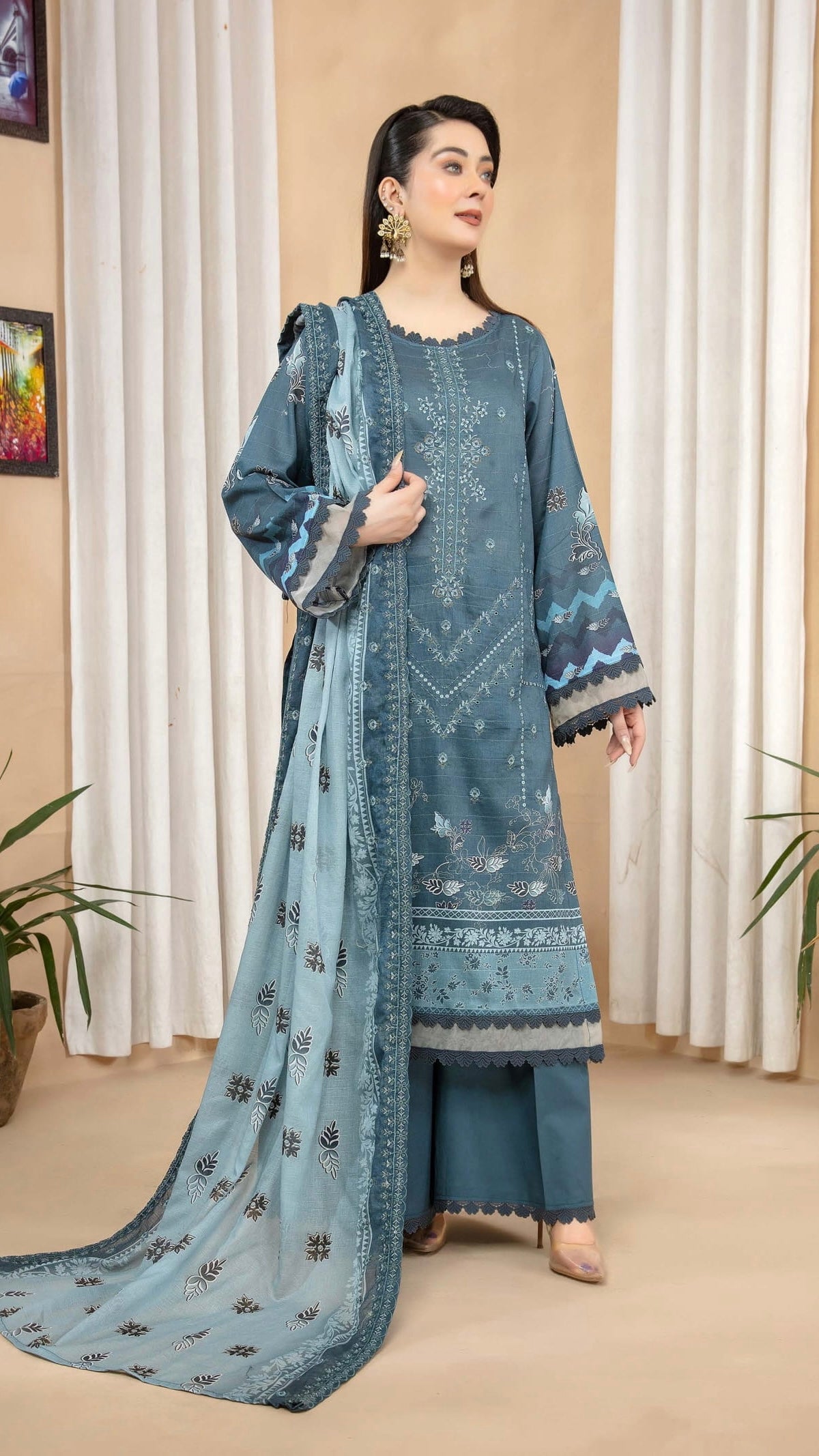 Fabric: Digital Printed & Embroidered Lawn Shirts, Digital Printed & Embroidered Cutwork Voil Dupatta, Plain Cotton Trouser