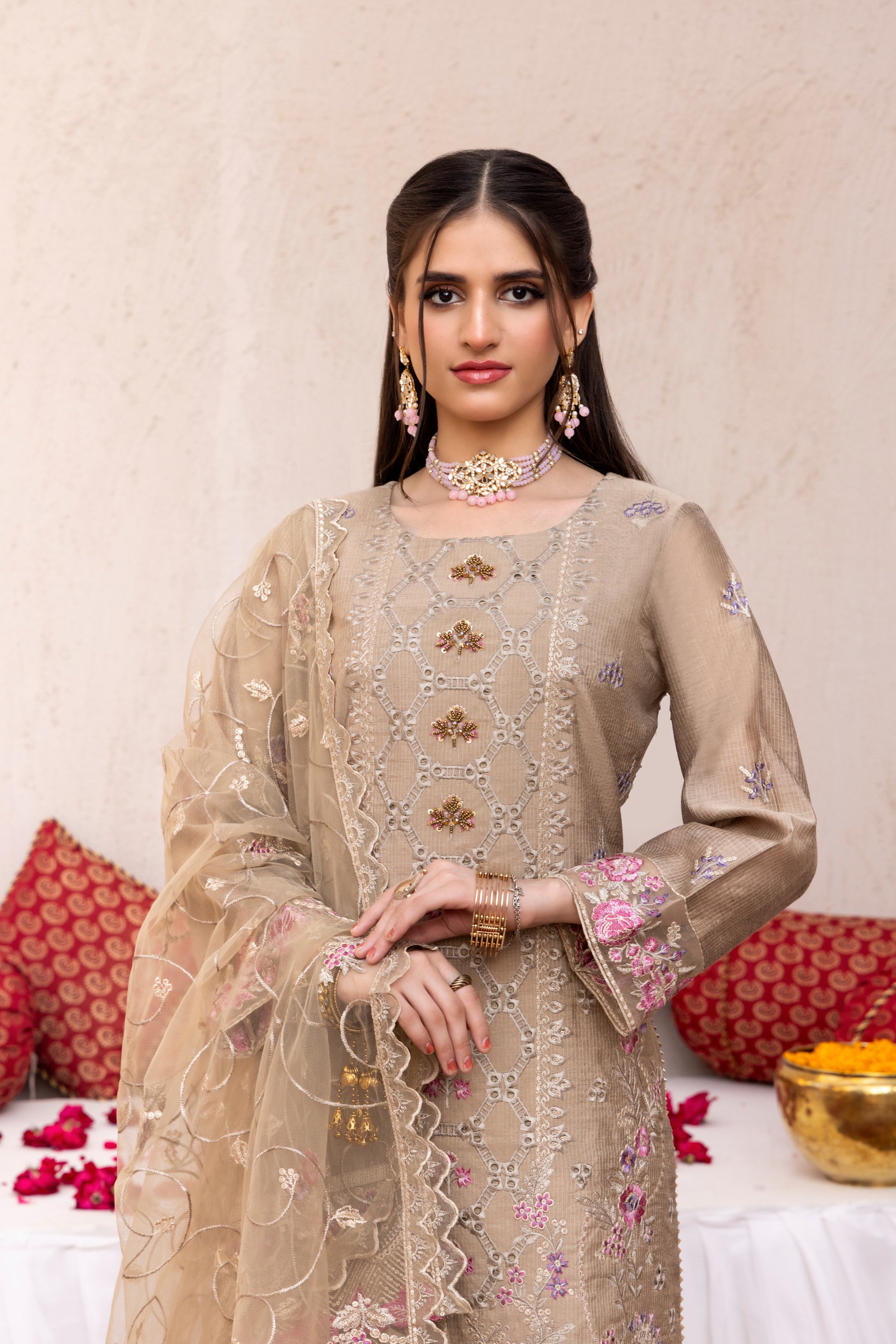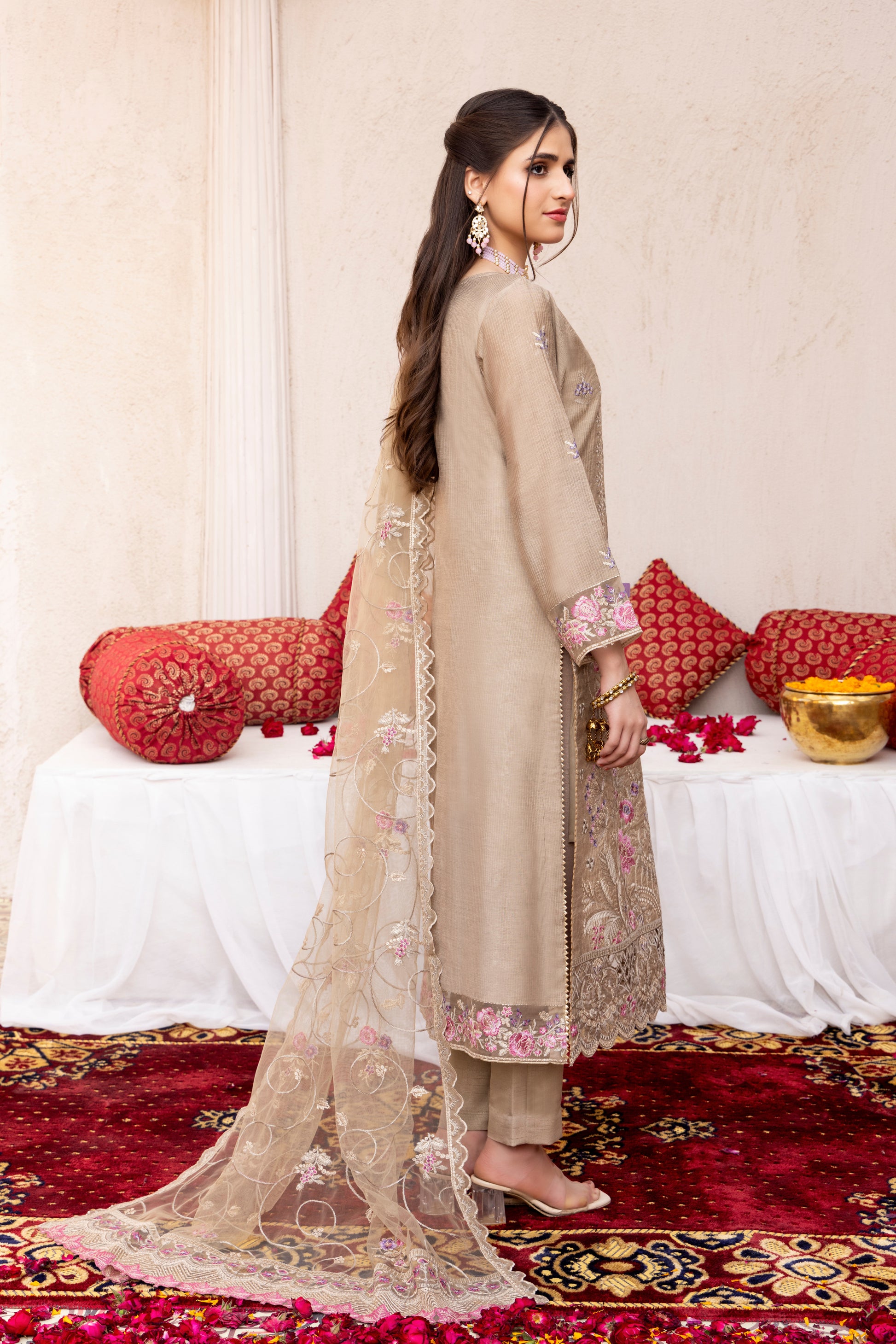 Fabric: Textured Cotton Silk dress, Net dupatta, Cotton Silk trouser