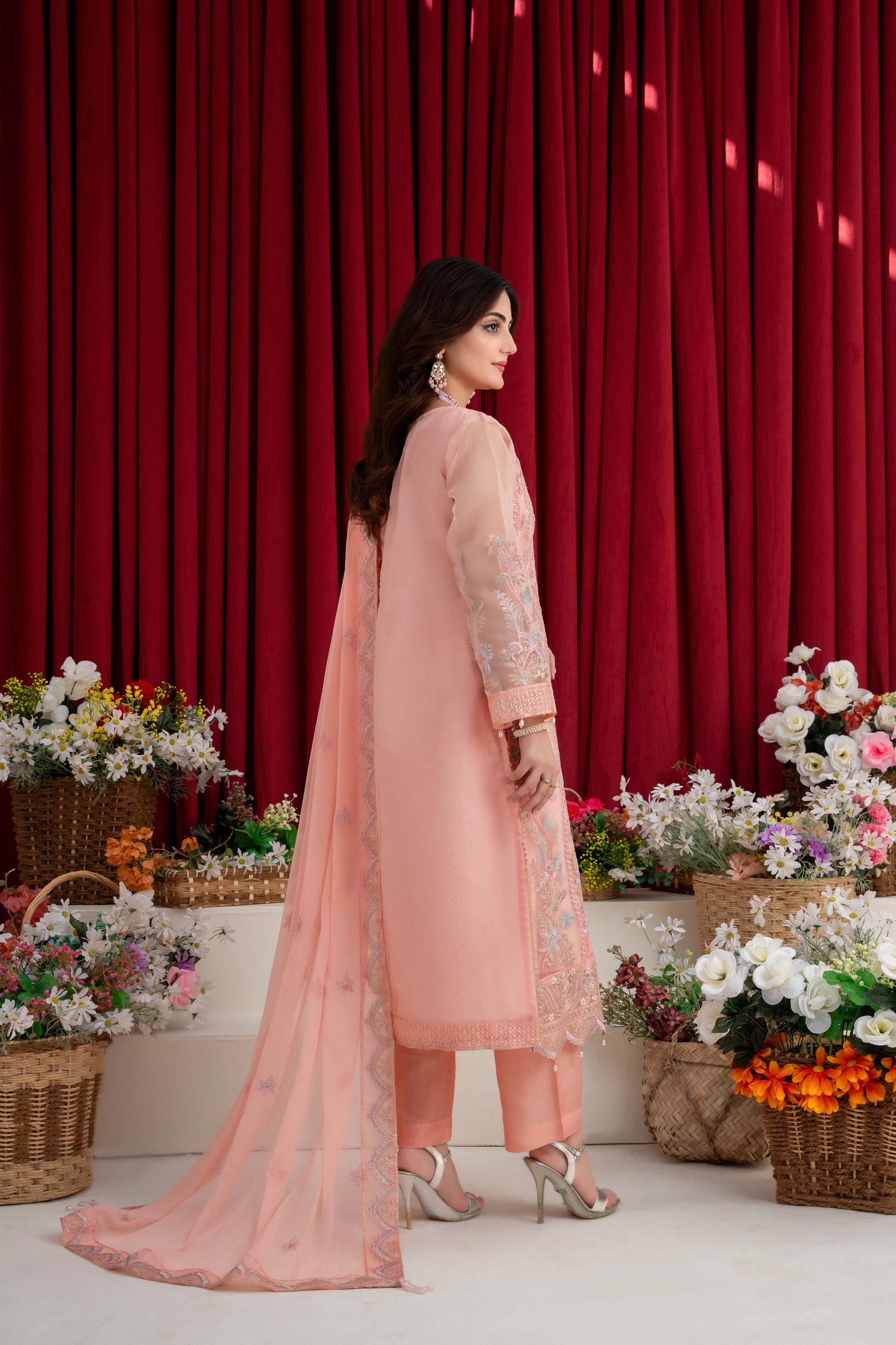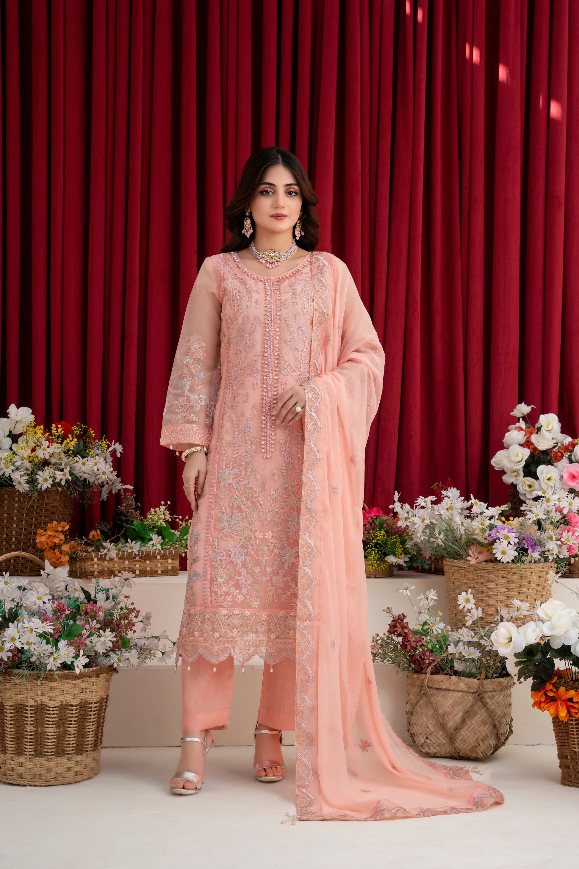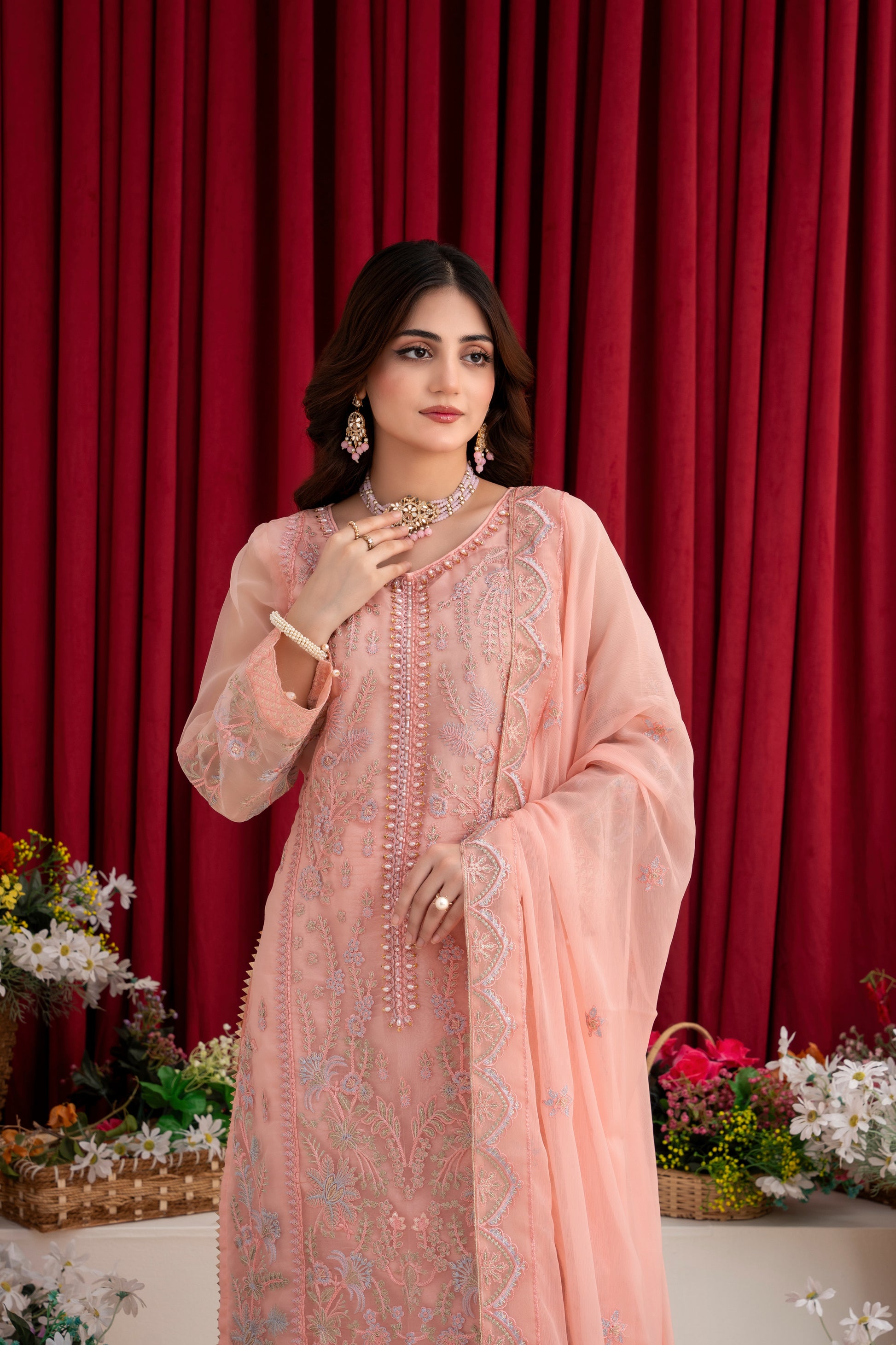 Fabric: Embroidered Organza Shirt, Embroidered Chiffon Dupatta, Same Dyed Rawsilk Trouser