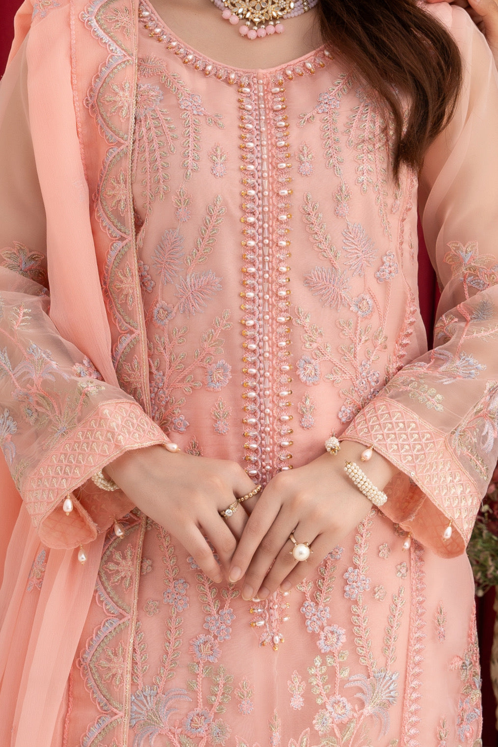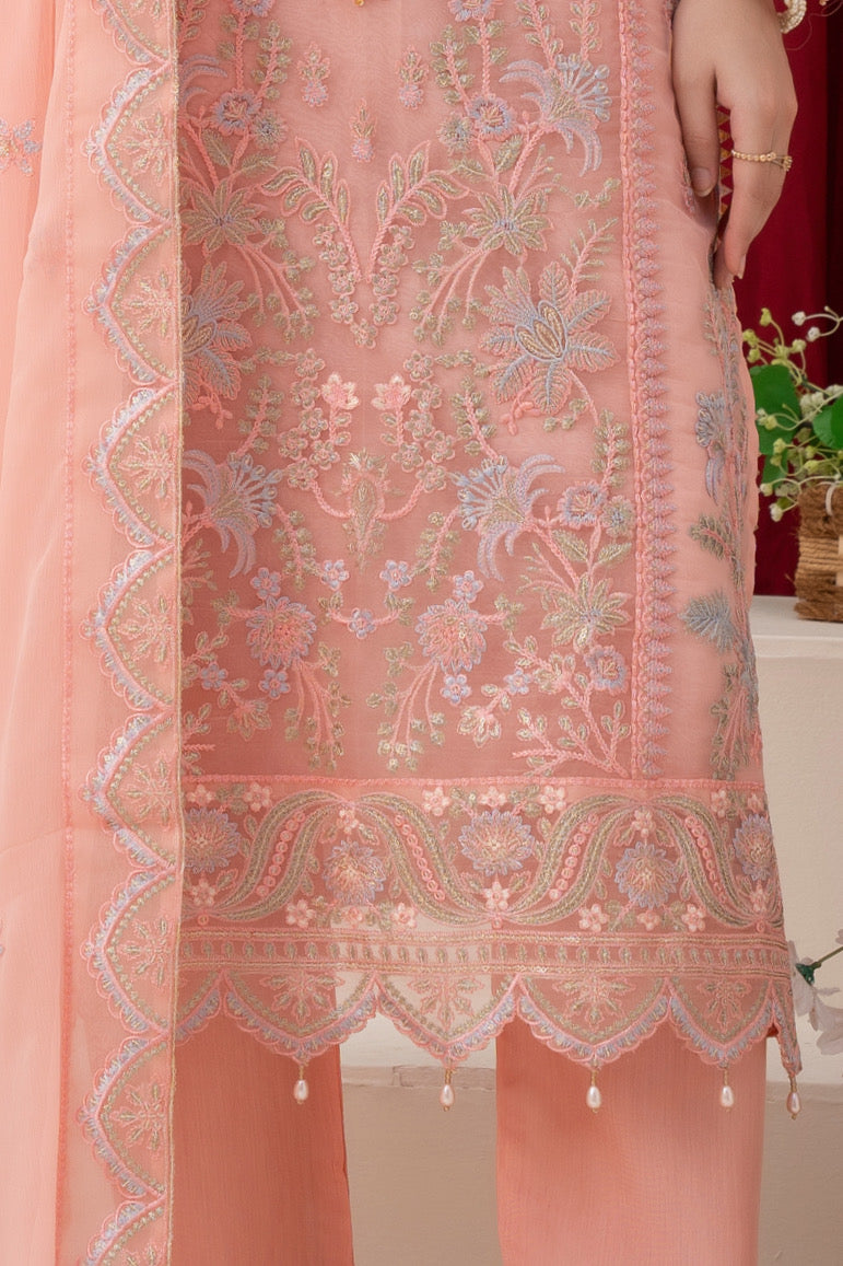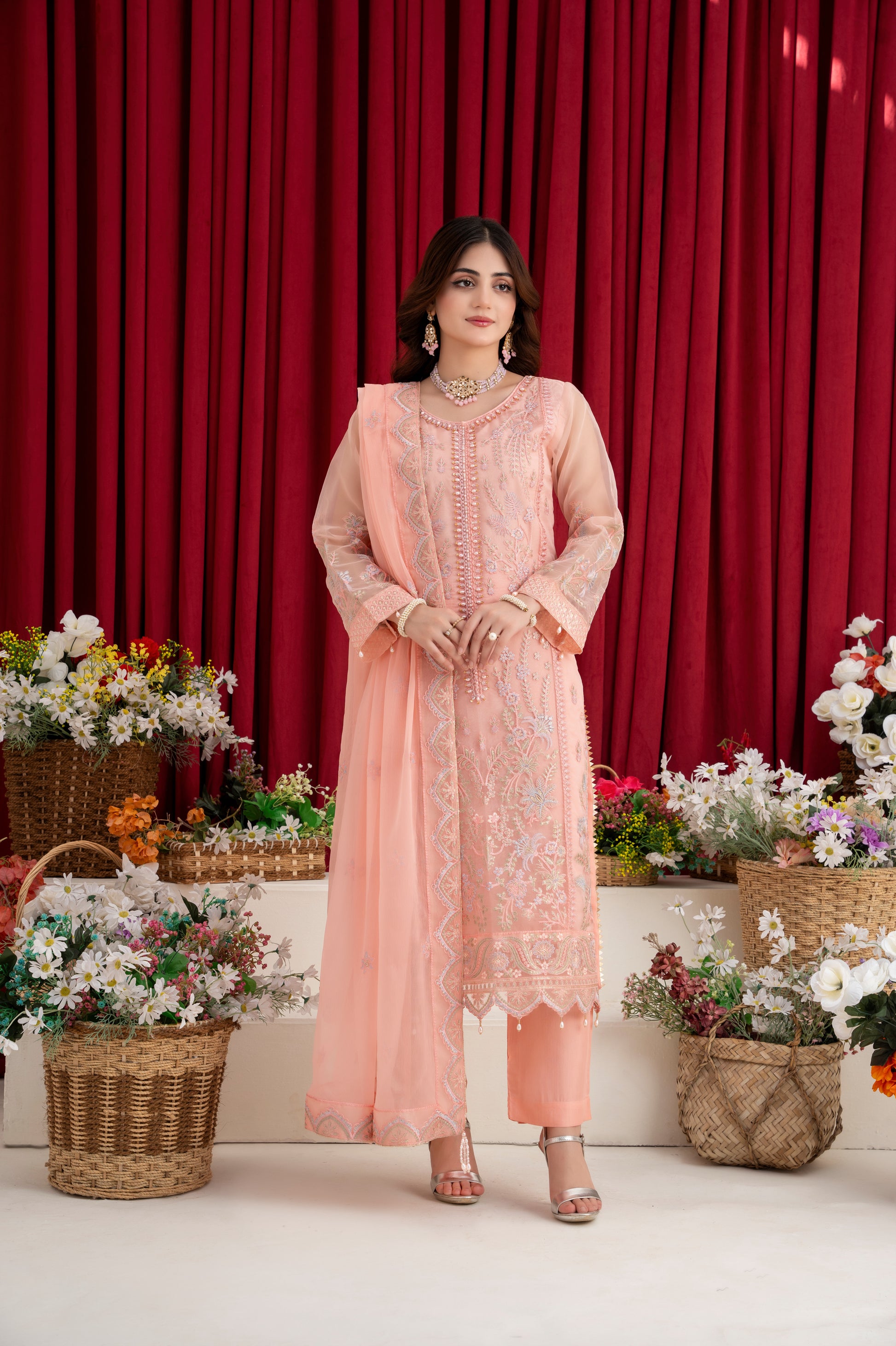 Fabric: Embroidered Organza Shirt, Embroidered Chiffon Dupatta, Same Dyed Rawsilk Trouser