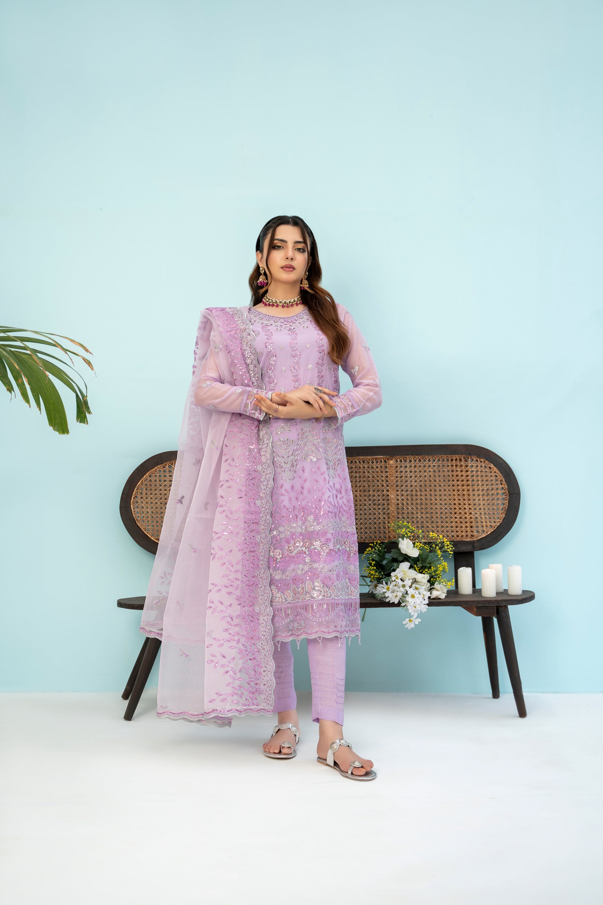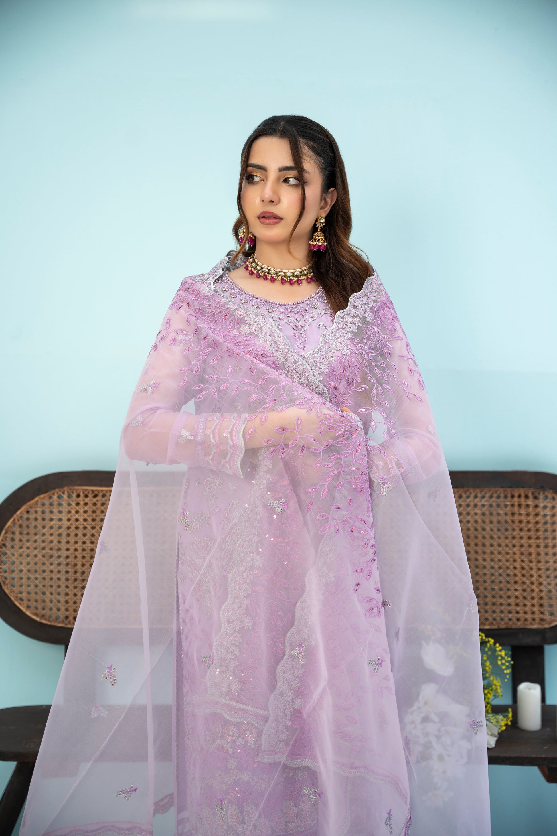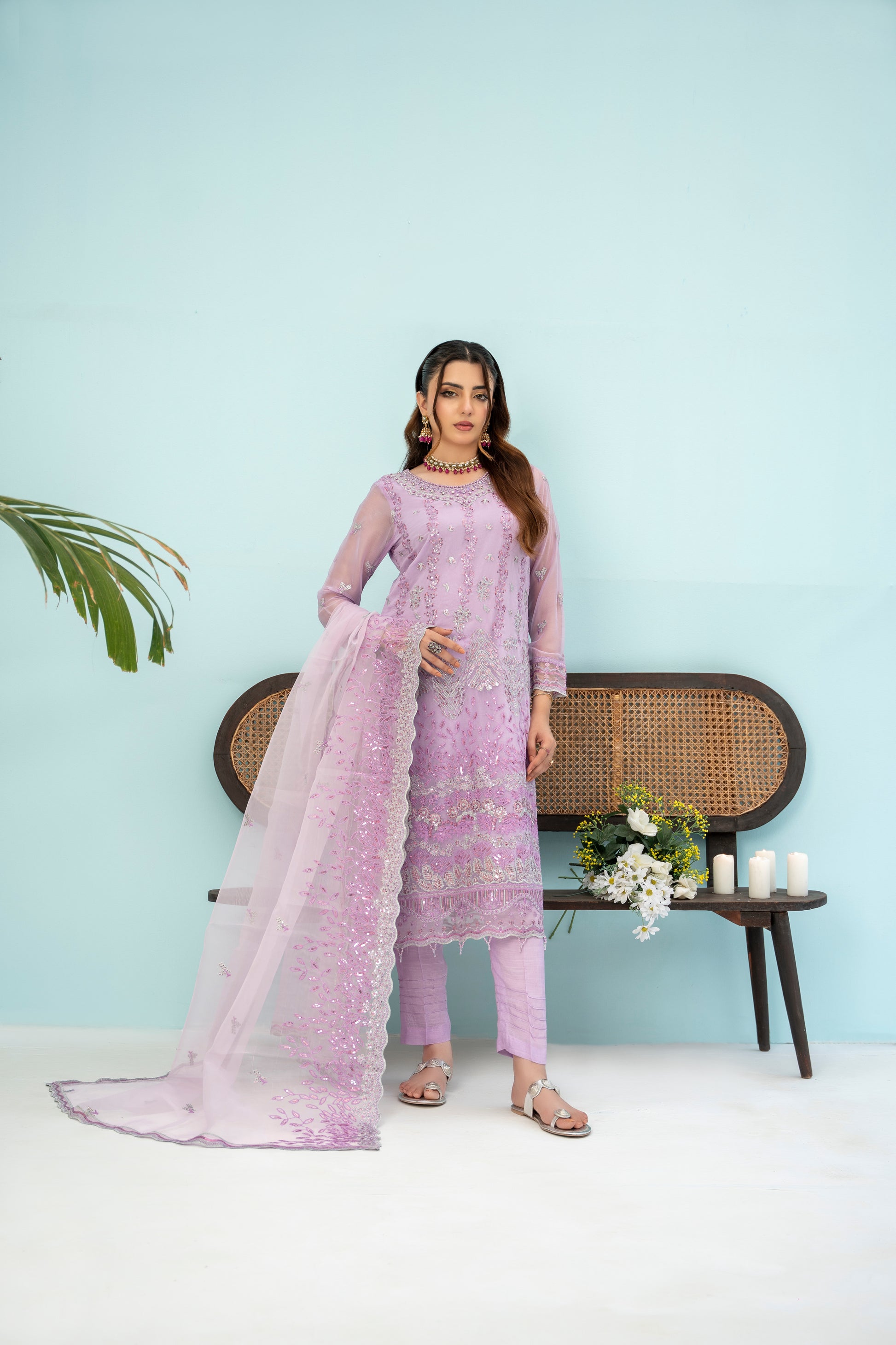 Fabric: Embroidered Chiffon Shirt, Embroidered Organza Dupatta, Same Dyed Rawsilk Trouser