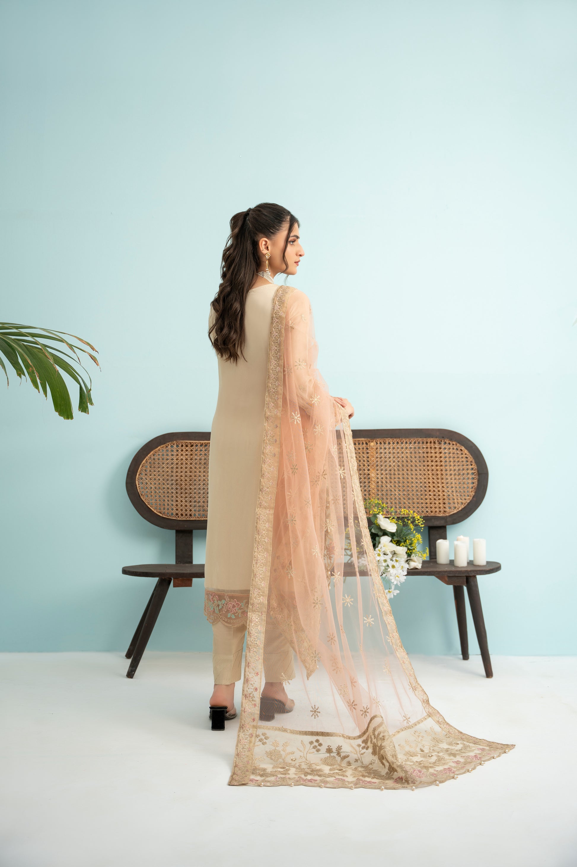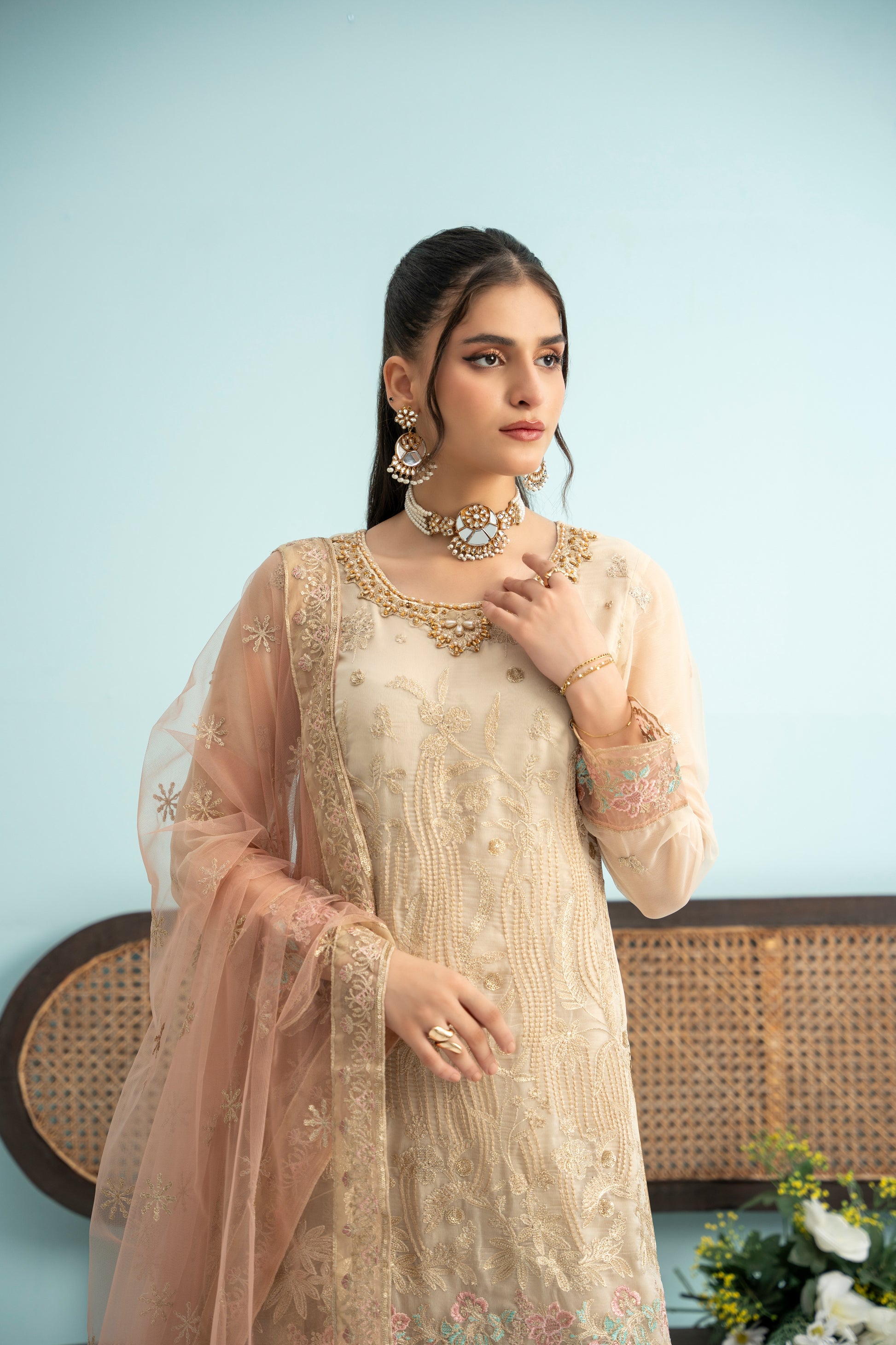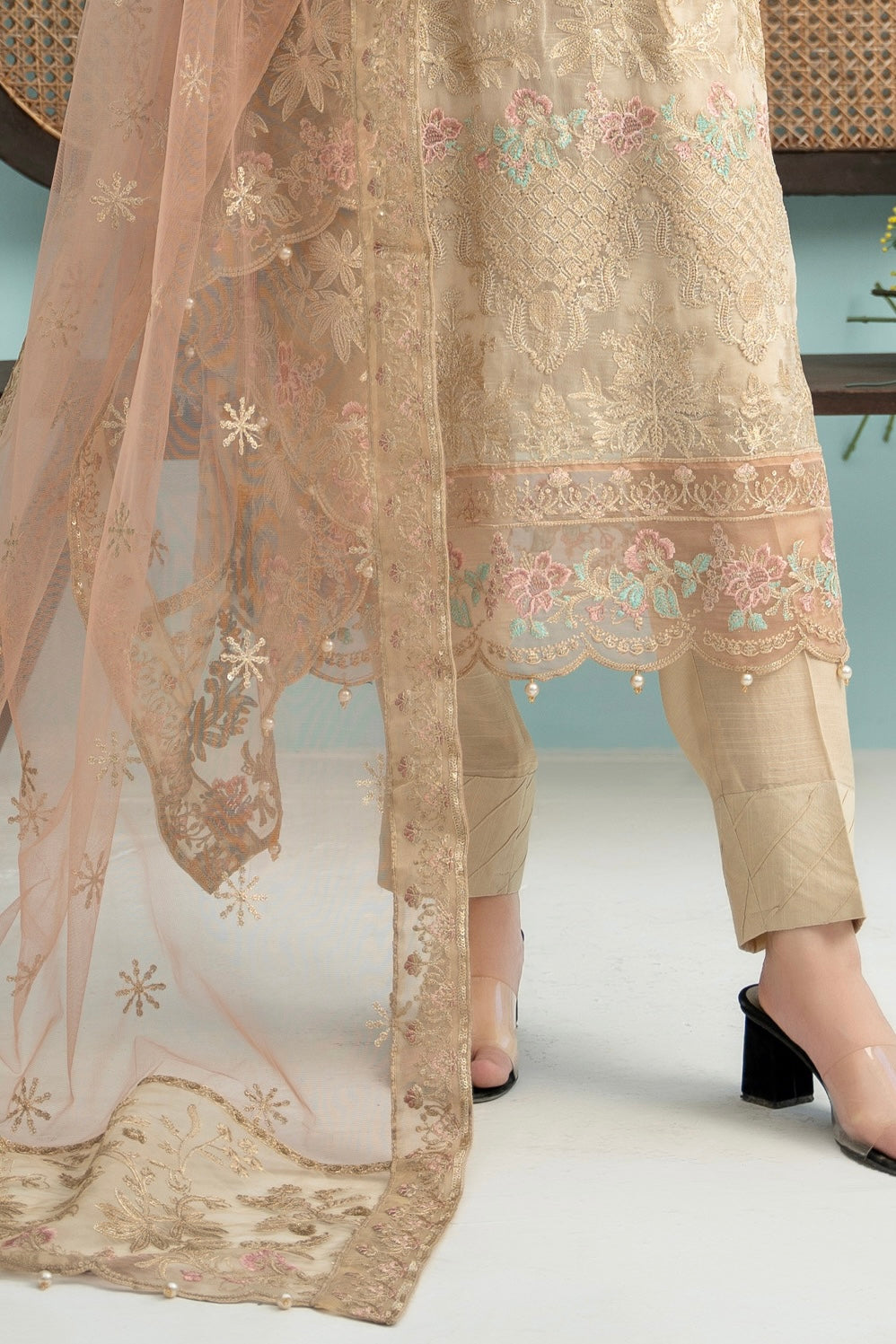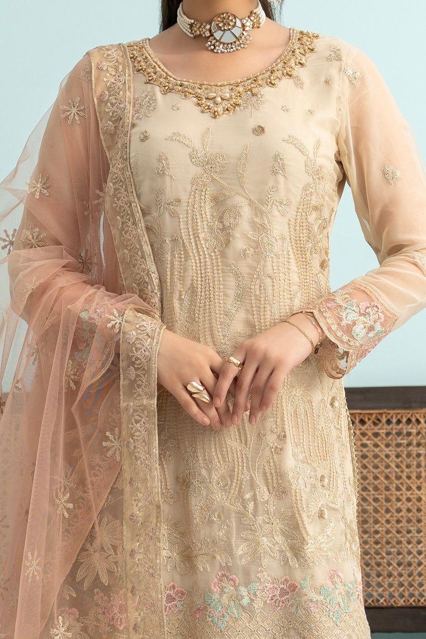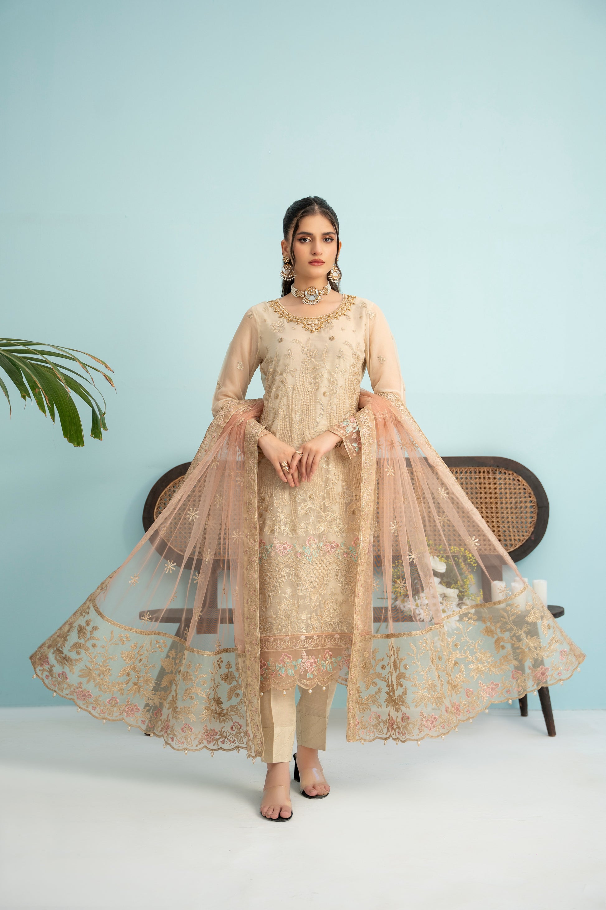 Fabric: Embroidered Chiffon Shirt, Embroidered Net Dupatta, Same Dyed Rawsilk Trouser