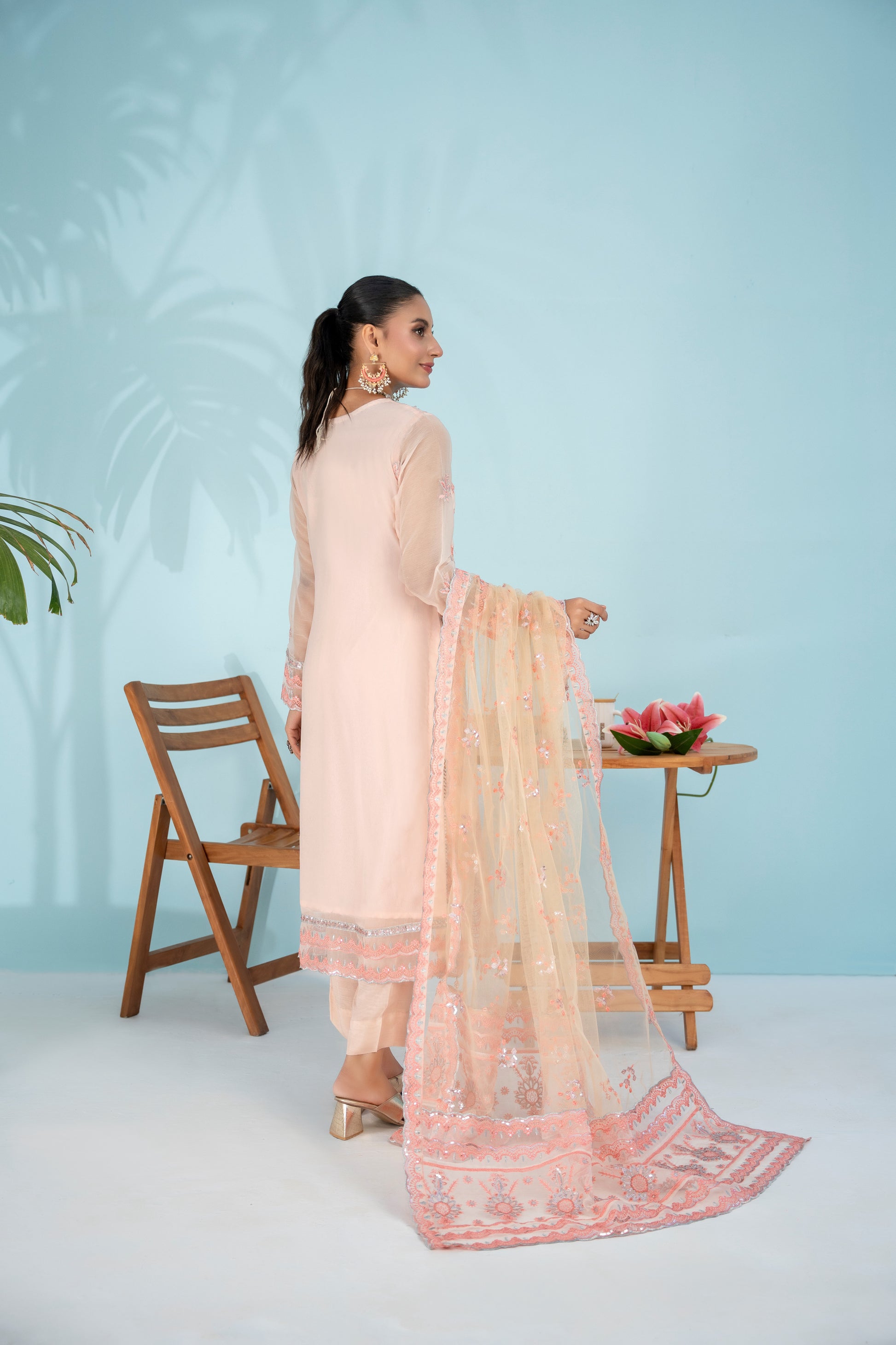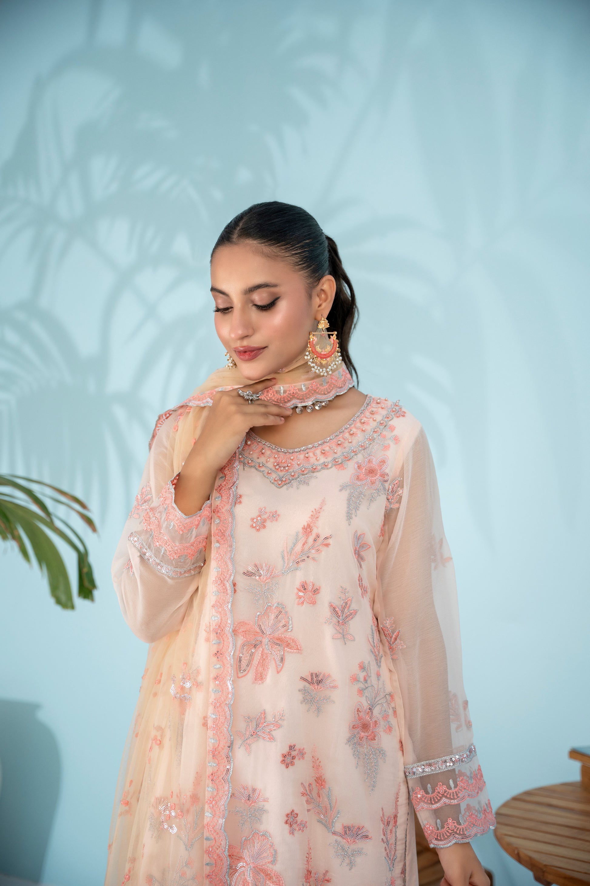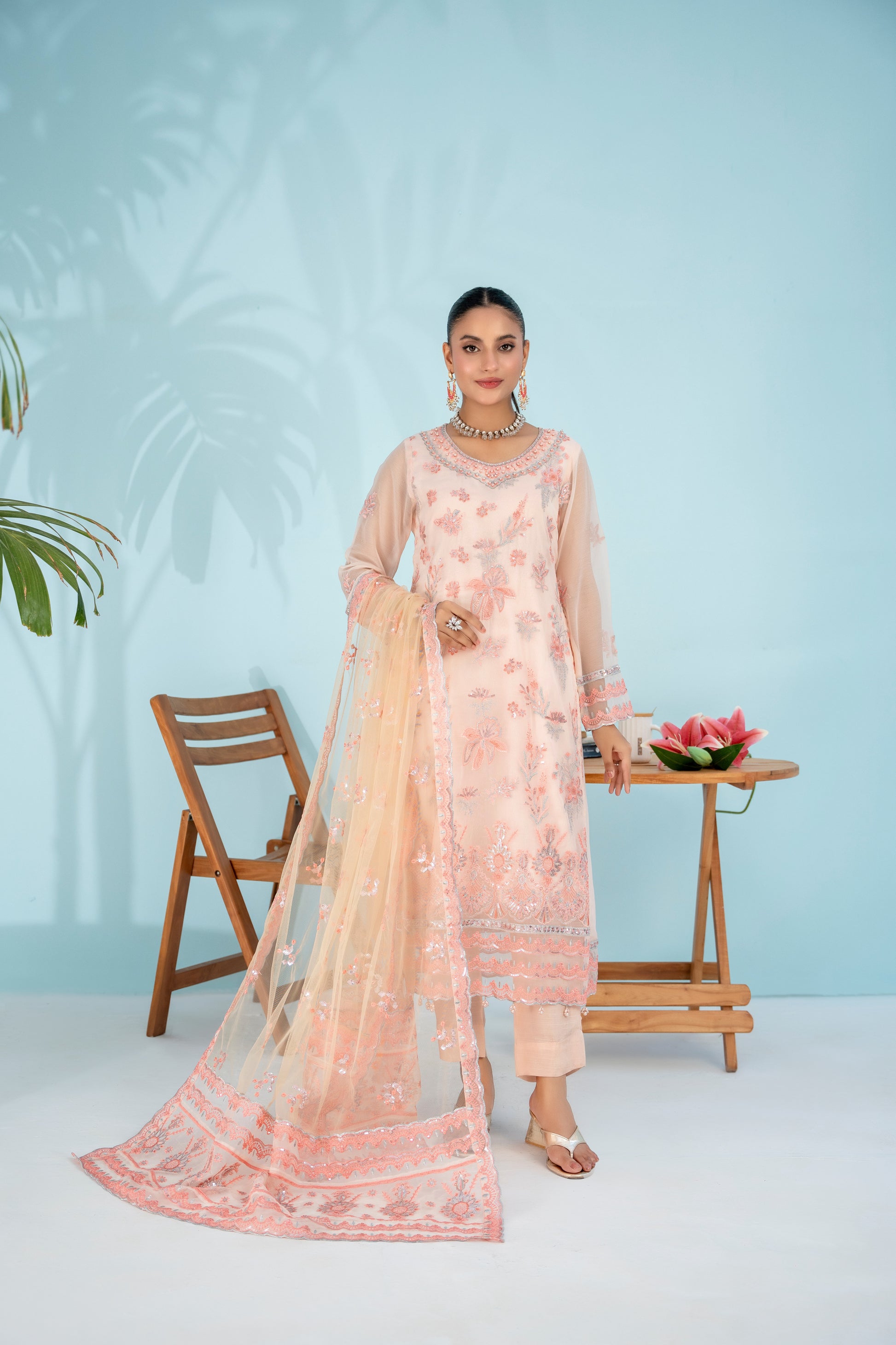 Fabric: Embroidered Chiffon Shirt, Embroidered Net Dupatta, Same Dyed Rawsilk Trouser